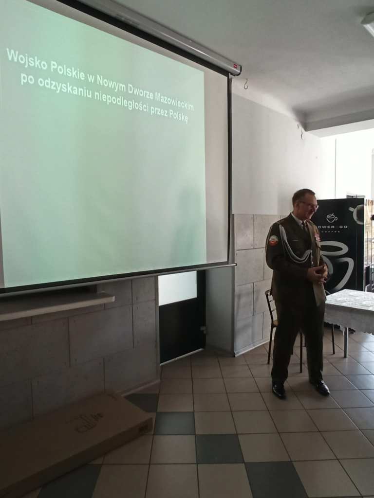 Z 2 Mazowieckiego pułku saperów płk rez. Alfred Kabata i ppor. rez. Stanisław Wojciech Wykowski udali się do Zespołu Szkół nr 2 w Nowym Dworze Mazowieckim, gdzie przeprowadzili dla kilkudziesięciu uczniów lekcję historyczno - wojskową. Płk rez. Alfred Kabata omówił oraz przedstawił prezentację multimedialną dotyczącą funkcjonowania Wojska Polskiego w Nowym Dworze Mazowieckim, ze szczególnym podkreśleniem Batalionu Elektrotechnicznego (1921 - 1939). Zapoznał także słuchaczy z działalnością Związku Oficerów Rezerwy Rzeczypospolitej Polskiej, szczególnie zaś z przedsięwzięciami będącymi przedmiotem współpracy ze szkołą. Wiodącym przykładem w tym zakresie jest upamiętnianie oficerów Batalionu Elektrotechnicznego zamordowanych w Katyniu i Charkowie poprzez sadzenie „Katyńskich Dębów Pamięci” w ramach programu „Katyń ocalić od zapomnienia”.