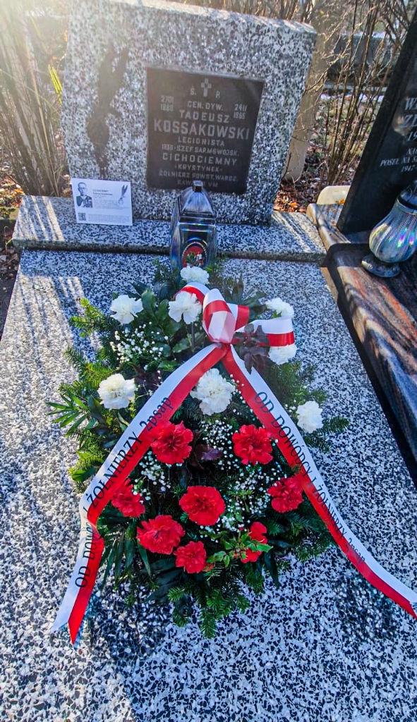 Następnie delegacja 2 Mazowieckiego pułku saperów z dowódcą pułku, płk. Mariuszem Łuszczyńskim, udała się na Cmentarz Wojskowy na Powązkach, gdzie na grobie generała Kossakowskiego złożono kwiaty i zapalono znicz, oddając hołd swojemu patronowi i podkreślając ciągłość tradycji, którą pułk kontynuuje od ponad 80-ciu lat.