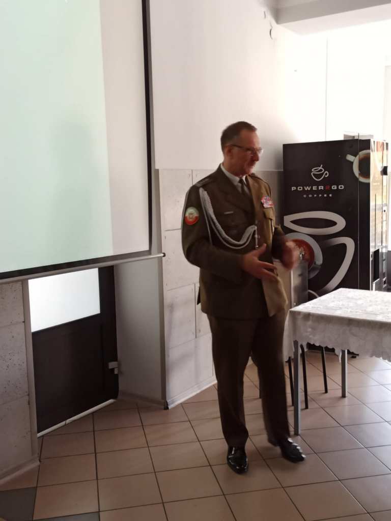 Ppor. rez. Stanisław Wojciech Wykowski zapoznał młodzież z formami służby wojskowej, którą mogą wybrać po ukończeniu szkoły. Omówił zasady podjęcia szkolenia i służby w Szkole Legii Akademickiej, Wojskach Obrony Terytorialnej oraz odbywania Dobrowolnej Zasadniczej Służby Wojskowej.