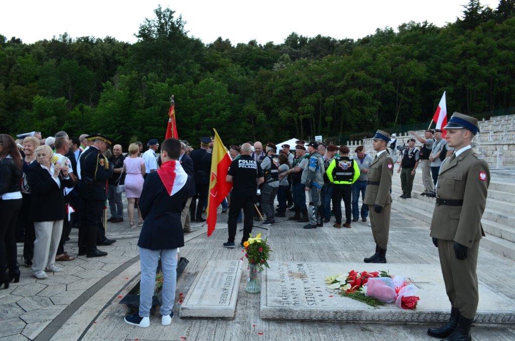 Na Polskim Cmentarzu Wojennym, przed pomnikiem, wznieśli okrzyk „Cześć i chwała bohaterom”. Złożyli także kwiaty, znicze i czerwone maki na grobie gen. Władysława Andersa.