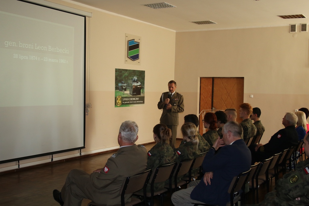 Wykład, podobnie jak było to w latach ubiegłych, odbył się w ramach obchodów Święta 5 pułku chemicznego. Audytorium stanowili żołnierze 5 pułku chemicznego, uczniowie klas mundurowych i zaproszeni goście, wśród których byli m.in.: Margarete Machata – przedstawicielka rodziny gen. L. Berbeckiego, kmdr. Jacek Barański – dowódca Centralnego Ośrodka Analizy Skażeń, Krzysztof Łoziński – członek Zarządu Powiatu Tarnogórskiego.