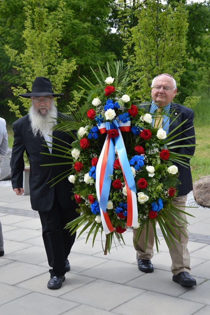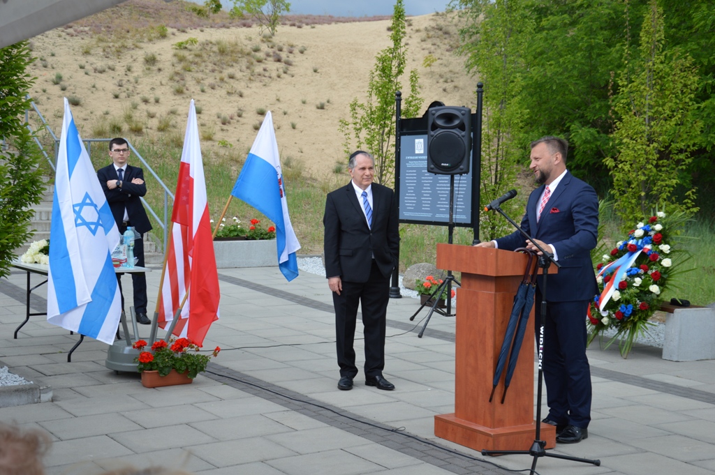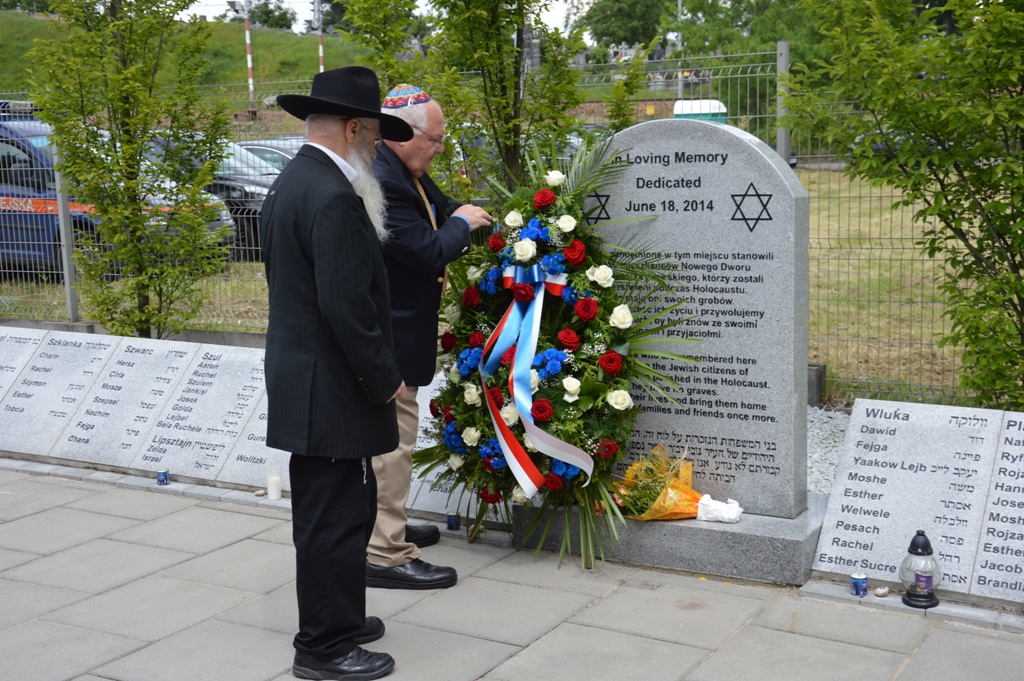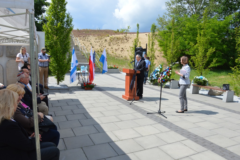 Na zakończenie uroczystości odśpiewano hymny Izraela i Polski, a następnie pod Pomnikiem Pamięci złożono wieńce i białe róże.