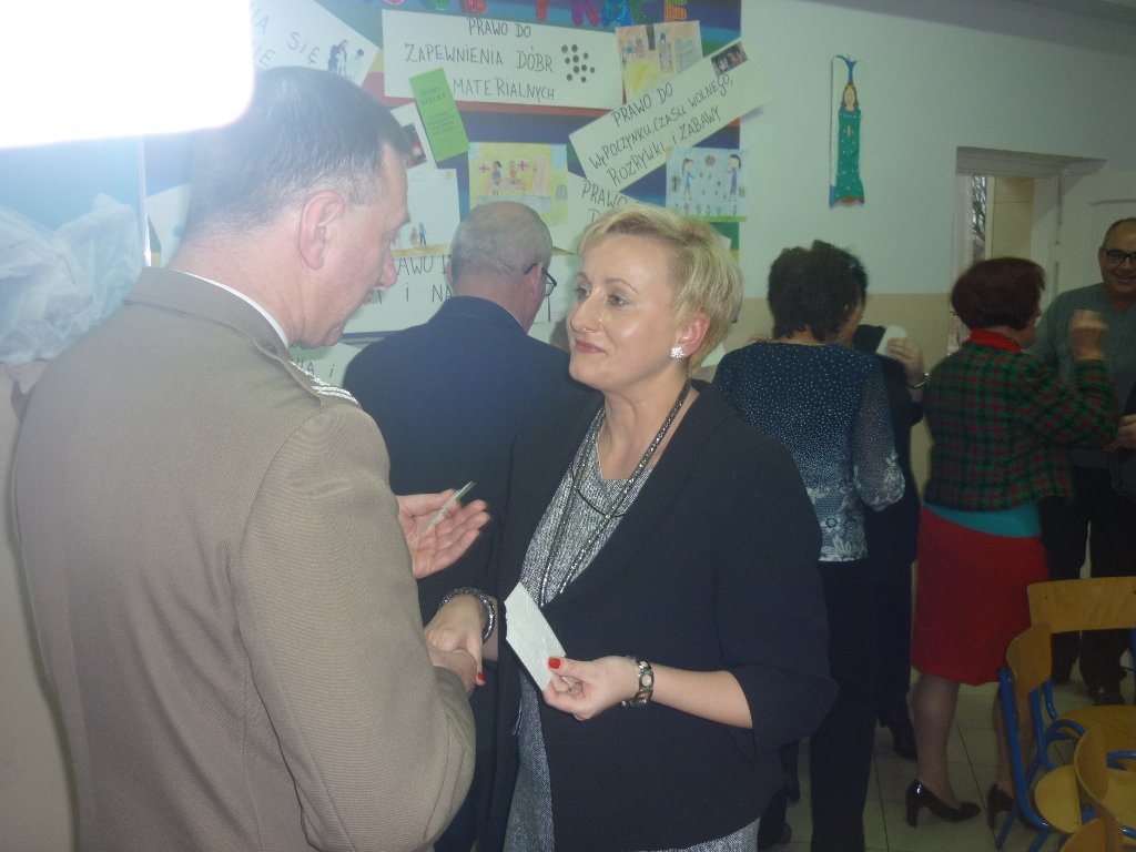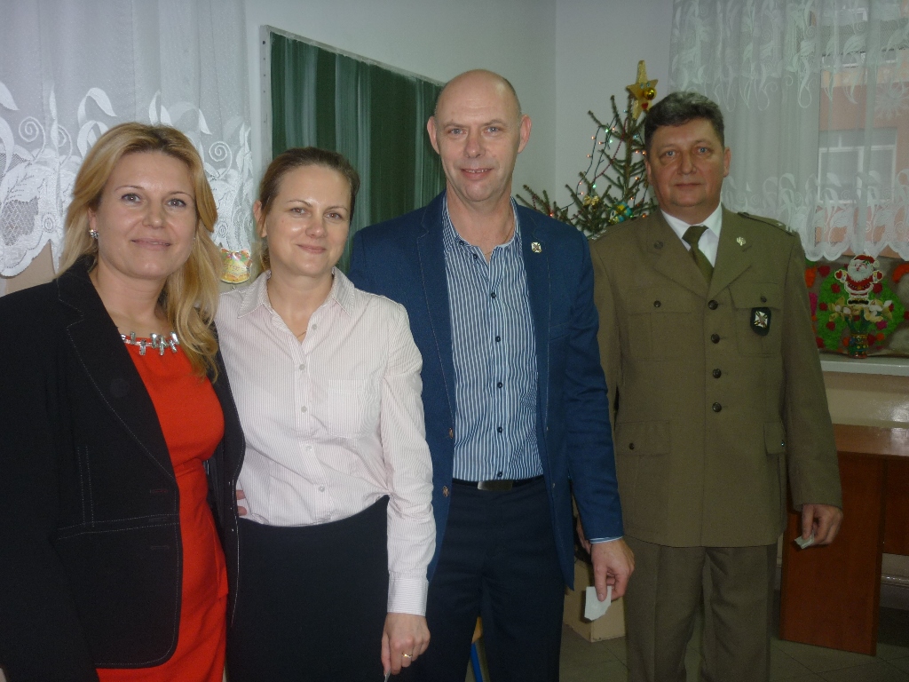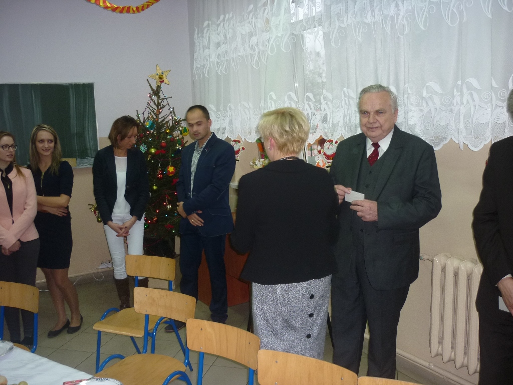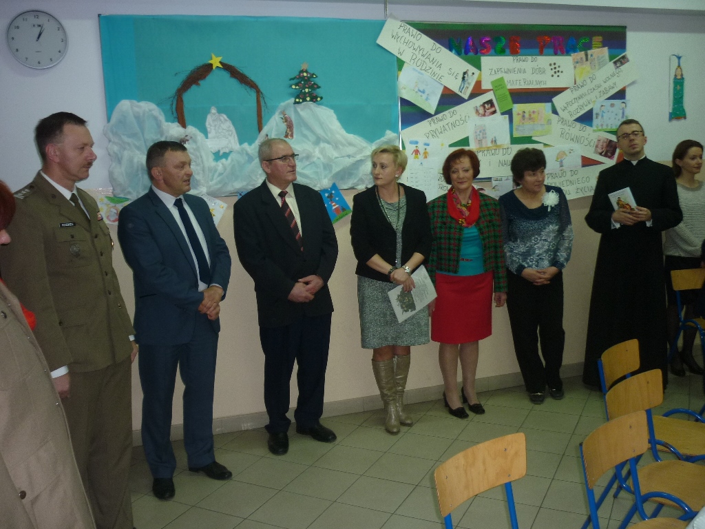 Dyrektor szkoły Irmina Tokarsa-Iwaniuk życzyła wszystkim miłych, rodzinnych Świąt i pomyślności w 2014 r. Życzenia złożyli również wójt Adam Krawczak i prezes ZOR RP płk rez. Alfred Kabata.