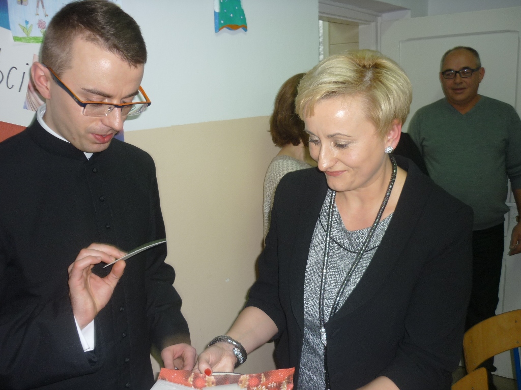 Po odczytaniu przez ks. Kamila Nowackiego fragmentu ewangelii i poświęceniu opłatków przystąpiono do składania sobie życzeń.