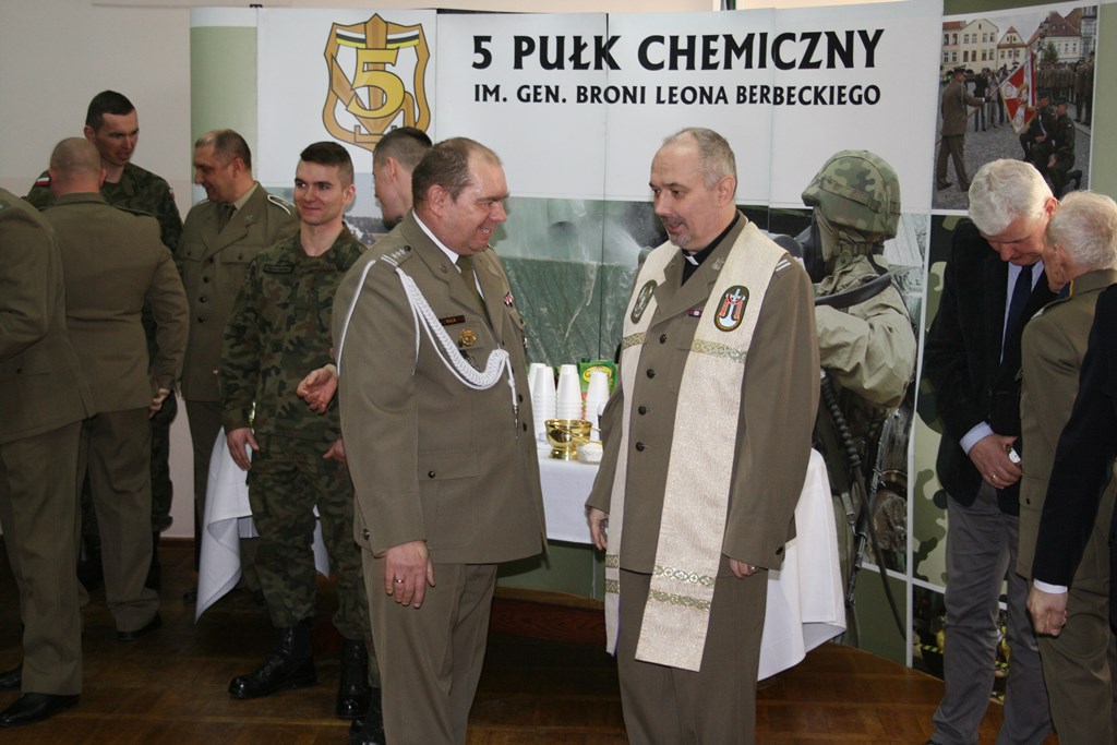 Spotkanie poprzedziła msza święta, którą w kaplicy garnizonowej odprawił nowy kapelan wojskowy mjr Janusz Kłopot.