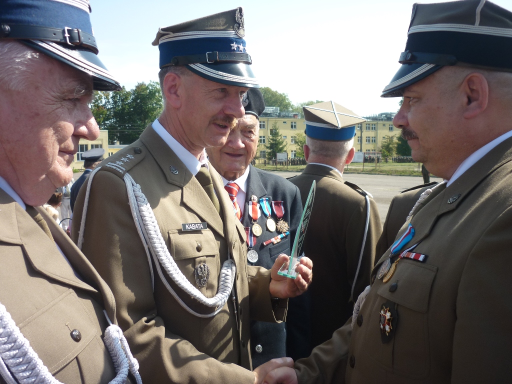 Z okazji Święta Pułku płk rez. Alfred Kabata wraz z członkami delegacji złożył dowódcy pułku okolicznościowe życzenia i wręczył statuetkę.