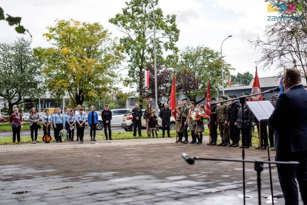 Minutą ciszy uczczono poległych w 1939 roku, modlitwę za nich i tych którzy doświadczyli cierpień w nazistowskich obozach koncentracyjnych odmówił ks. prałat Jan Niziołek proboszcz bazyliki pw. Apostołów św. Piotra i Pawła w Zawierciu. Zaprosił on także obecnych na mszę świętą do bazyliki o godz.18.00 odprawianą za obrońców ojczyzny w 1939 roku i ofiary II wojny światowej.