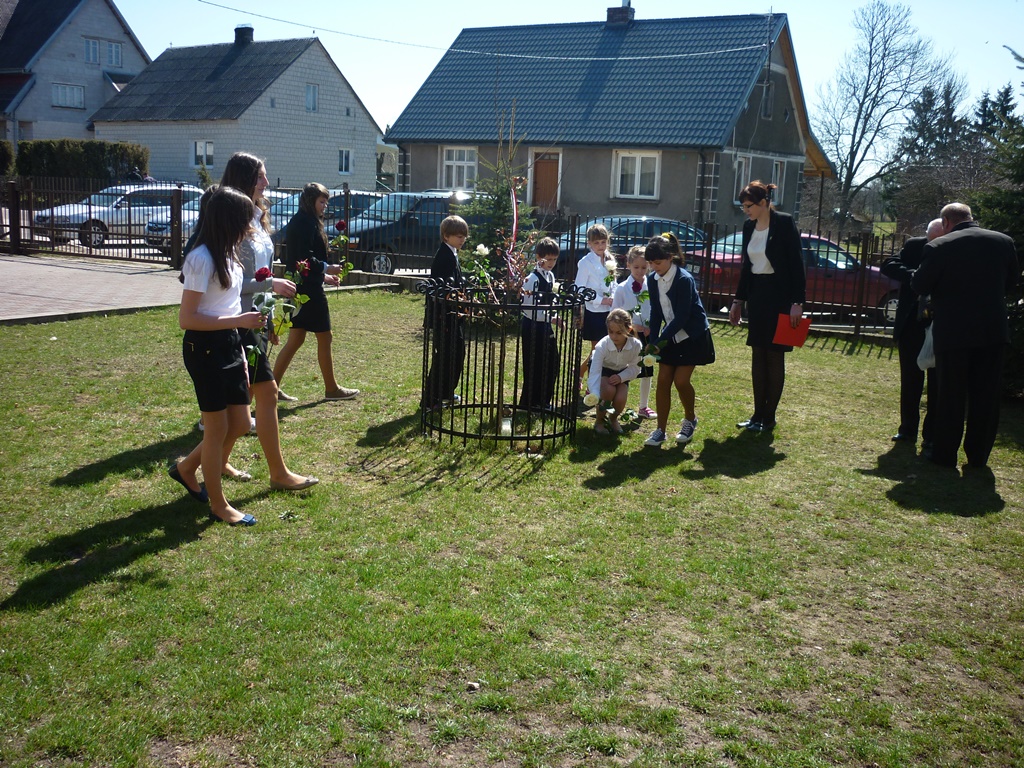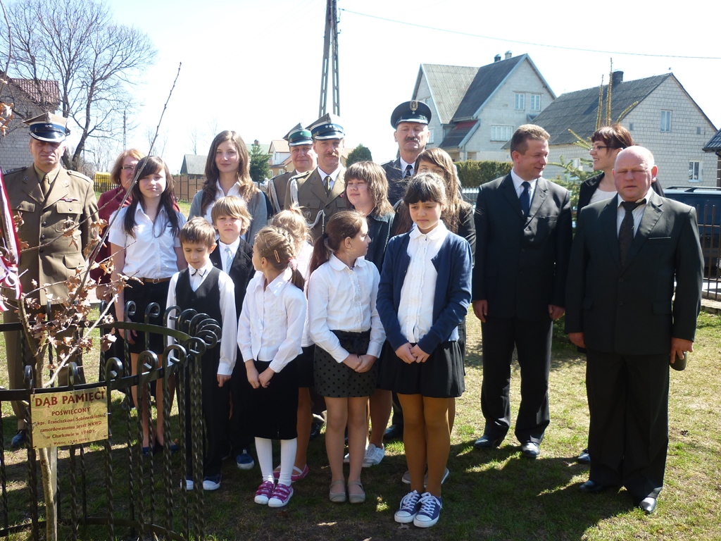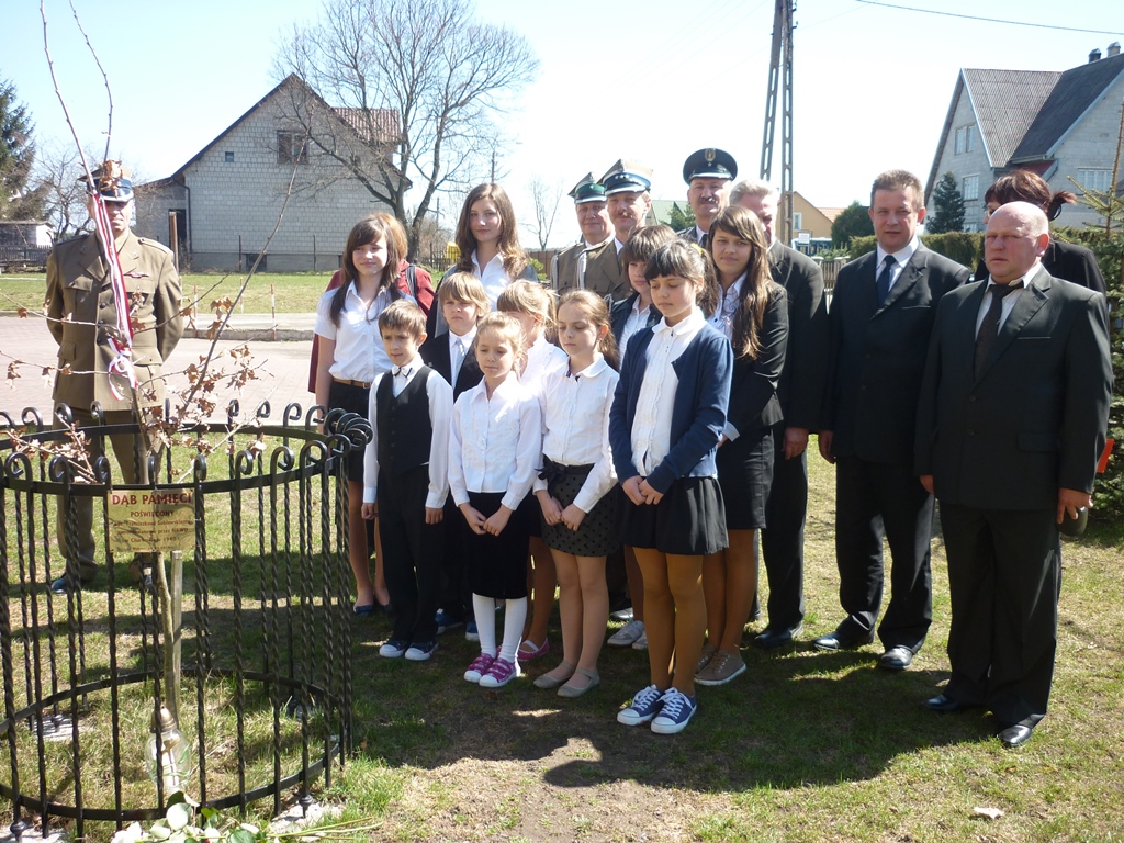 Po odśpiewaniu wszystkich zwrotek hymnu narodowego delegacja uczniów szkoły oraz zaproszeni goście złożyli kwiaty i zapalili znicze przy „Dębie Pamięci” poświęconym kpt. Franciszkowi Sobiewskiemu.