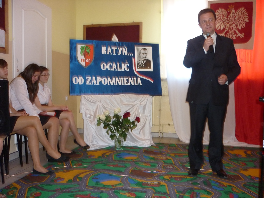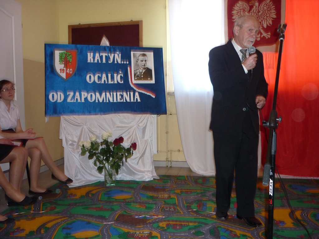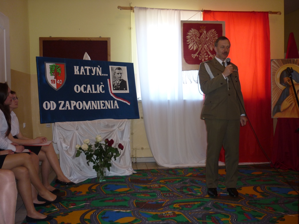 Zabierając głos płk rez. A. Kabata podkreślił znaczenie pamięci o zbrodni Katyńskiej dla młodego pokolenia, wyraził uznanie za działania podejmowane w tym względzie przez dyrekcję i grono nauczycielskie. Słowa uznania skierował do Małgorzaty Parzych, która była inicjatorem udziału szkoły w ogólnopolskiej akcji „Katyń… ocalić od zapomnienia”. Z kolei Bohdan Sobiewski wyraził wdzięczność za kultywowanie w szkole pamięci o jego ojcu. Bogdan Glinka – burmistrz Myszyńca wskazał na konieczność zachowania pamięci o tych, którzy oddali życie za ojczyznę.
