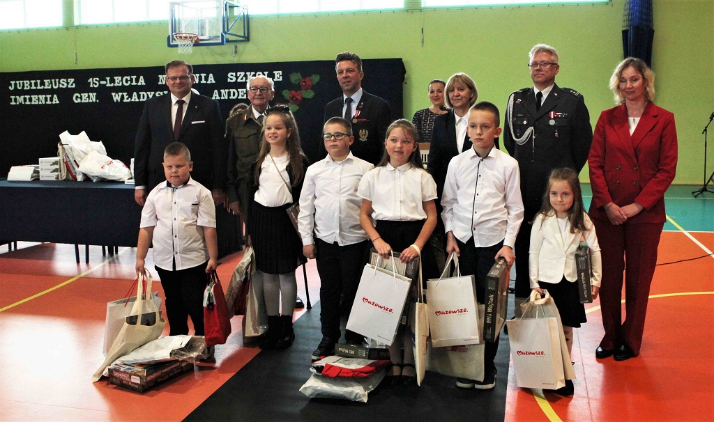 Następnie uroczystości kontynuowano w Szkole Podstawowej im. gen. Władysława Andersa w Nowem, która obchodziła 15 - lecie nadania sztandaru i imienia patrona.