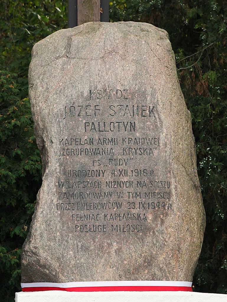 Podczas Powstania Warszawskiego ksiądz Stanek, należący do Zgromadzenia Pallotynów, był kapelanem Zgrupowania „Kryska” Armii Krajowej, działał pod pseudonimem Rudy. Udzielał sakramentów, niósł duchowe wsparcie a także organizował niezbędną pomoc medyczną. Pozostał ze swymi podopiecznymi do samego końca, rezygnując z możliwości ewakuacji z Czerniakowa, a swoje miejsce w pontonie odstąpił jednemu z najciężej rannych powstańców. 23 września 1944 roku został wzięty do niewoli przez Niemców, którzy poddali duchownego bestialskim torturom, a następnie dokonali egzekucji, wieszając niezłomnego kapelana na jego własnej stule. W 1999 roku ks. Józef Stanek znalazł się w gronie 108 błogosławionych męczenników II wojny światowej. Jego beatyfikacji dokonał Jan Paweł II.