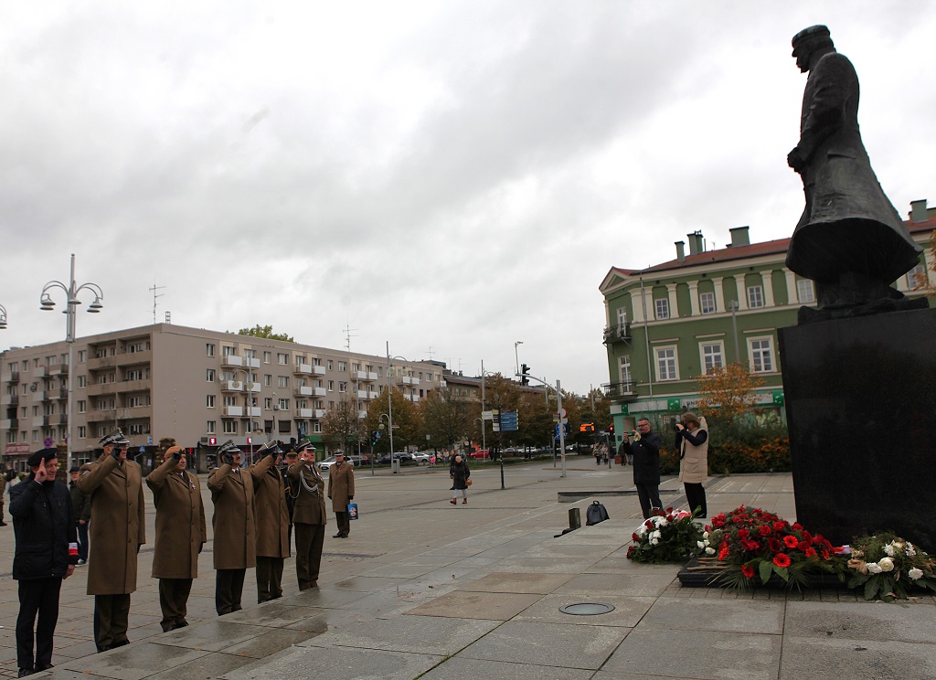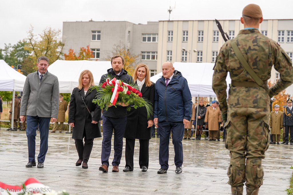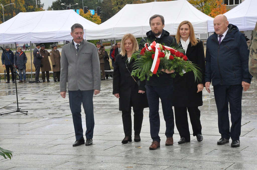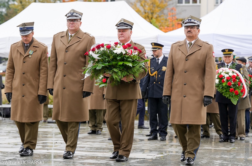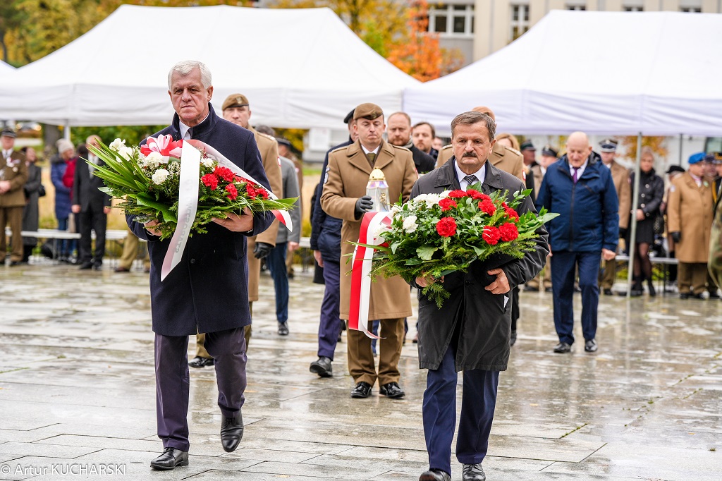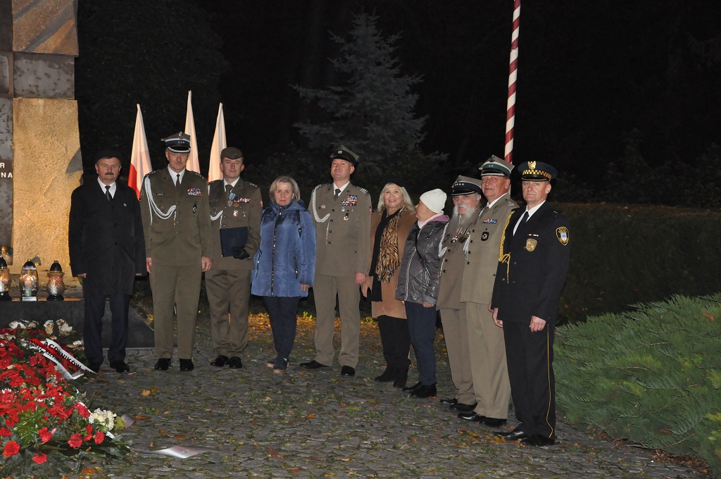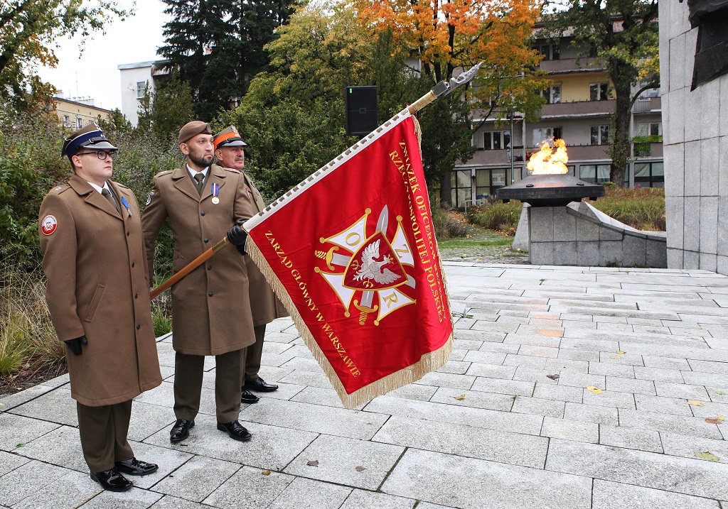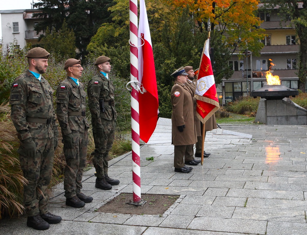 Następnie przystąpiono do złożenia kwiatów pod Pomnikiem Obrońców Ojczyzny. Jako pierwsza kwiaty złożyła delegacja Związku Oficerów Rezerwy RP wraz z gen. bryg. Cezarym Janowskim i gen. bryg. Piotrem Wańkiem. Po złożeniu kwiatów odegrano sygnał „Śpij Kolego” i pieśń reprezentacyjną Wojska Polska.