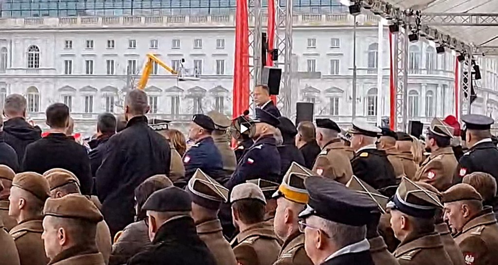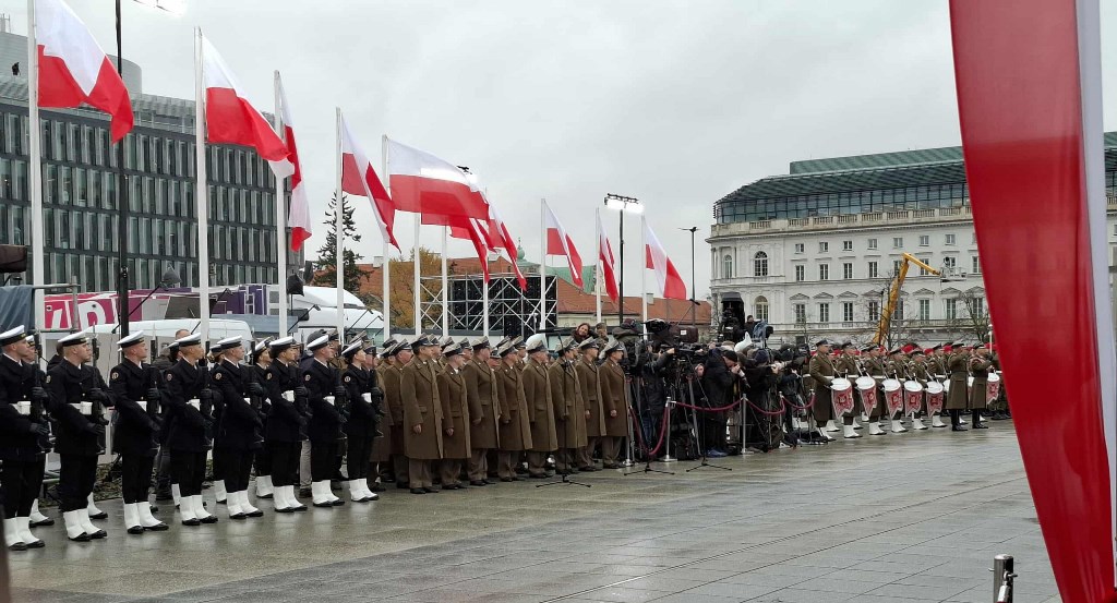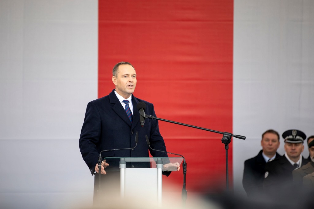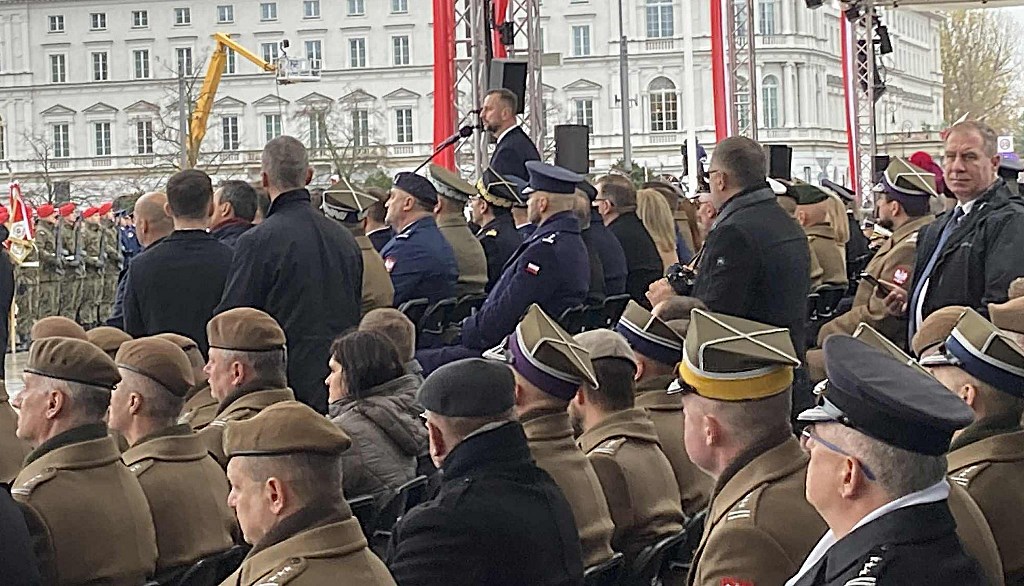– Stoimy tu, moi Drodzy Żołnierze, Oficerowie, Generałowie, Funkcjonariusze, Panie Premierze, Panie Marszałek, Drodzy Państwo, mimo że w czasie II wojny światowej Niemcy zniszczyli Pałac Saski i umiejscowione w nim serce polskiego wojska – szefostwo Sztabu Generalnego Wojska Polskiego. Stoimy tu, mimo że Niemcy w czasie II wojny światowej na tym placu postawili wielką literę V, która miała być wyrazem dominacji żywiołu niemieckiego nad żywiołem polskim. A my jesteśmy wolni, niepodlegli, suwerenni. Stoimy tutaj świadomi tego, czym ta wolność i niepodległość jest. Mimo tego, że po roku 1945 komuniści nam wszystkim chcieli wmówić, że częścią naszego pięknego, narodowego, wolnościowego mitu są też potyczki komunistów w imię obcego mocarstwa, a nie w imię naszej niepodległości. My wiemy, czym jest wolność i niepodległość, i jesteśmy jej dzisiaj tutaj świadomi.