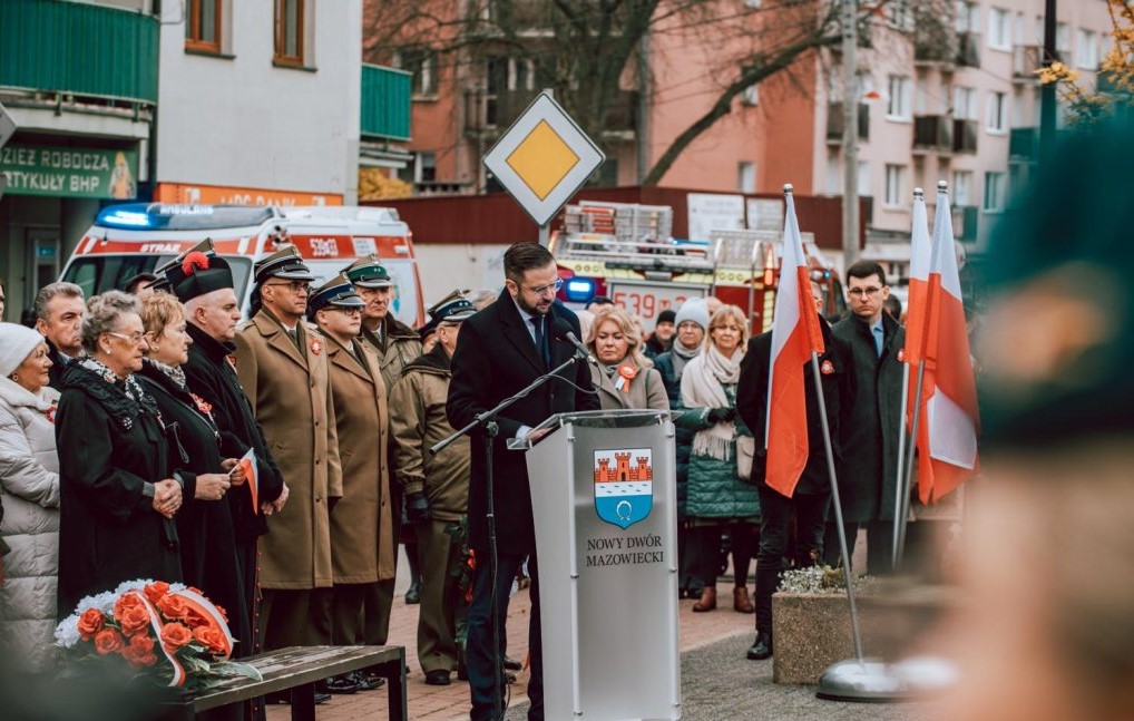W swoim wystąpieniu powiedział m.in.: 107 lat, Polska po 123 latach niewoli, odzyskała niepodległość. 11 listopada 1918 r., cały polski naród rozdarty przez 3 zaborców wołał radośnie: Polska wolna! Polska Niepodległa! Niech żyje wolna Polska! Spełniły się słowa z pieśni śpiewanej przez lud w świątyniach: Ojczyznę wolną racz nam zwrócić Panie! Ile trzeba mieć w sobie wiary w zwycięstwo, ile trzeba mieć miłości do Ojczyzny, aby przez kilka pokoleń walczyć o to, by Polak był Polakiem, by mógł mówić po polsku, by mógł myśleć po polsku, by zrozumieć że są rzeczy ważniejsze niż tylko ja. To wszystko zrobili i pokazali nam ci, którzy przez 123 lata nie zapomnieli i nie przestali wierzyć, nie przestali marzyć i nie przestali walczyć. Ci, dla których nadrzędnym celem była zawsze Ojczyzna, nawet ważniejsza niż życie, ważniejsza niż rodzina. 11 listopada – jest dniem radości, jest dniem dumy, jest dniem chwały, jest dniem, w którym ze wzruszeniem wspominamy, że po 123 latach niebytu nasze państwo, Polska, odrodziło się. Ten powiew wolności przed 107 laty dotarł również dotarł również do miejsca, w którym żyjemy, które jest naszą mała ojczyzną. W listopadzie 1918 r. Twierdza Modlin została przejęta przez Wojsko Polskie i powstał „Obóz Warowny”. To tutaj w Modlinie tworzono zręby Polskiej Marynarki Wojennej. Nie można planować przyszłości bez pamięci o przeszłości. Dlatego pamiętajmy o tych, którzy walczyli za naszą Ojczyznę. To dzięki nim możemy żyć w wolnej i demokratycznej Polsce. Nie pozwólmy nigdy odebrać wolności naszej Ojczyźnie.