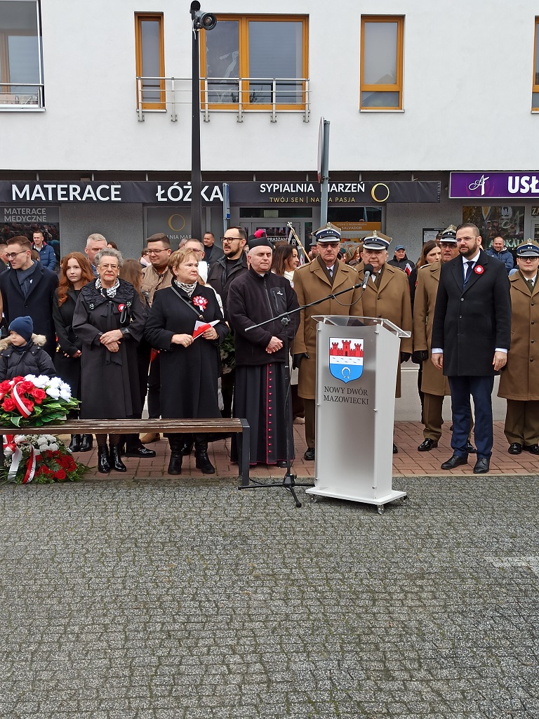 Jako pierwszy przemówienie okolicznościowe wygłosił Sebastian Sosiński – burmistrz Nowego Dworu Mazowieckiego. Jako drugi głos zabrał płk rez. Alfred Kabata – Prezes ZG Związku Oficerów Rezerwy Rzeczypospolitej Polskiej.