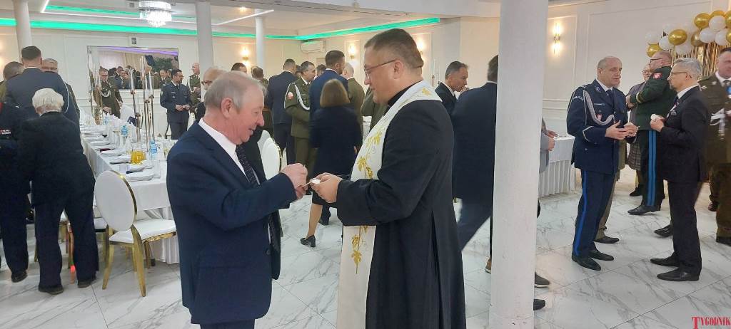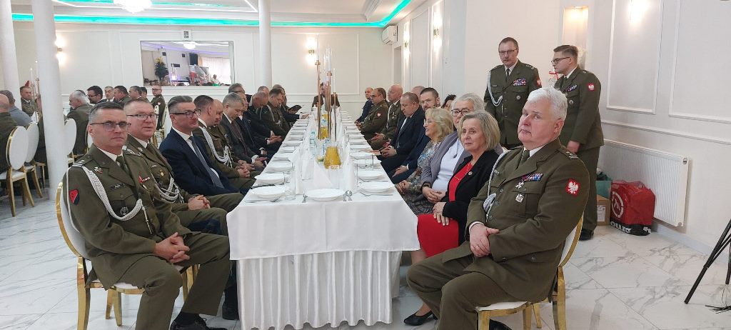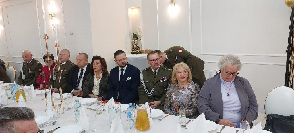 Po części ceremonialnej, ks. Dariusz Bala – proboszcz Parafii pw. św. Apostołów Piotra i Pawła w Nowym Dworze Mazowieckim, odmówił okolicznościową modlitwę, poświęcił opłatki i złożył życzenia uczestnikom spotkania. Życzenia złożył również płk rez. Alfred Kabata. Następnie uczestnicy spotkania przełamali się opłatkiem.