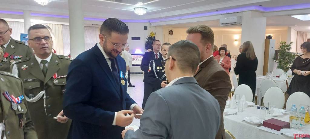 Następnie przystąpiono do wręczenia odznaczeń. Poprzedziło je, odczytanie informacji o nadaniu przez Prezydenta RP, Brązowego Krzyża Zasługi ppor. rez. Stanisławowi Wykowskiemu, który został mu wręczony przez Wojewodę Mazowieckiego 26 listopada 2025 r. Ppor. rez. Stanisław Wykowski został uhonorowany przez płk. rez. Alfreda Kabatę listem gratulacyjnym.