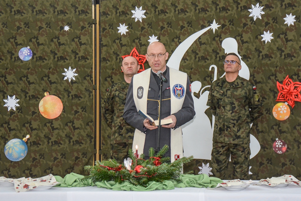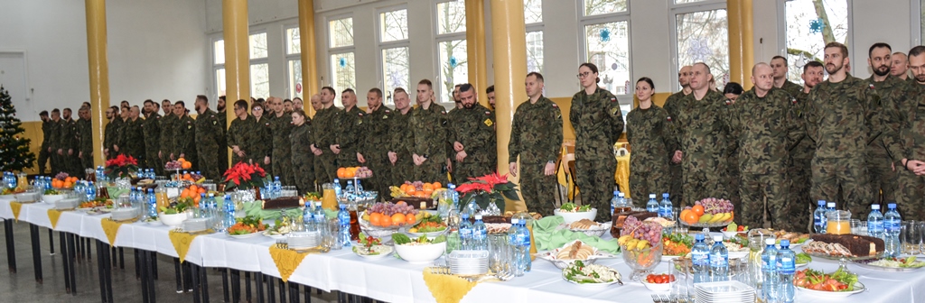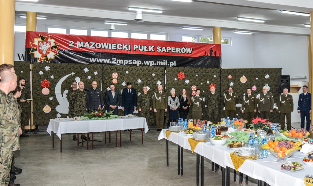 Uczestników spotkania powitał płk. Mariusz Łuszczyński – Dowódca 2 Mazowieckiego pułku saperów, który złożył wszystkim zebranym życzenia zdrowych i pogodnych Świąt Bożego Narodzenia oraz pomyślności i pokoju w nadchodzącym 2026 r. Następnie głos zabrał kapelan ks. ppłk Marcin Czeropski, który poświęcił opłatki. Po wspólnym odśpiewaniu kolędy uczestnicy spotkania złożyli sobie życzenia świąteczno - noworoczne.