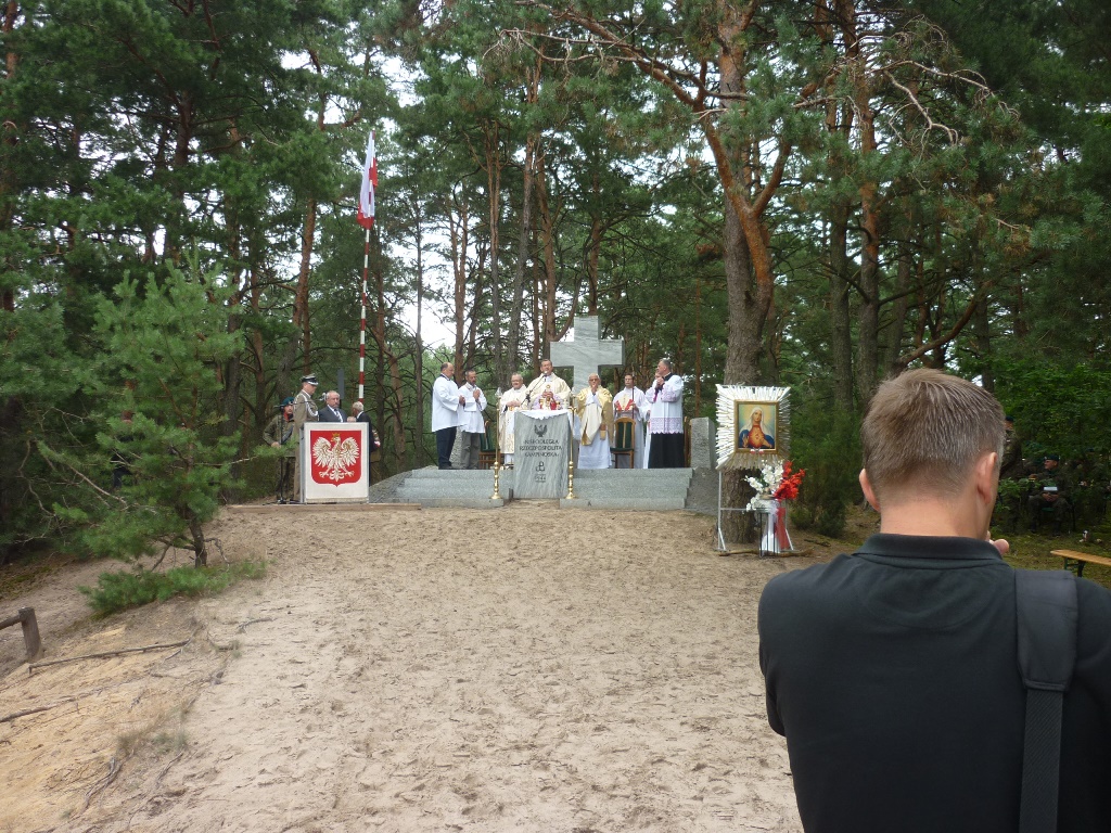Następnie ks. biskup przewodniczył koncelebrowanej mszy św. odprawionej pod pomnikiem Niepodległej Rzeczpospolitej Kampinoskiej. Po mszy św. odczytano apel poległych, oddano salwę honorową i złożono kwiaty na cmentarzu partyzanckim.