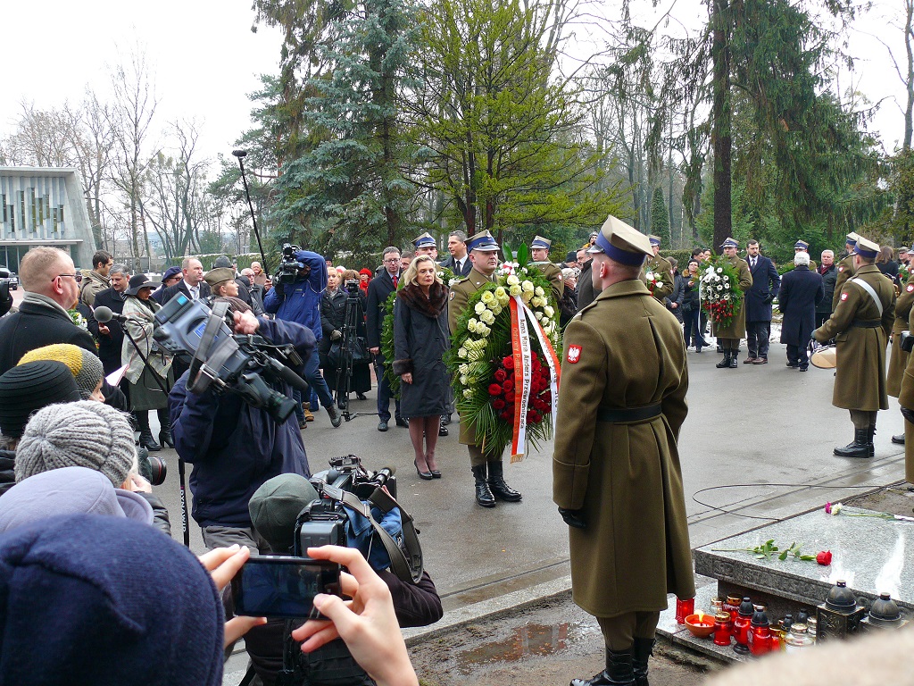 Po przemówieniach odbył się apel pamięci, a kompania honorowa Wojska Polskiego oddała salwę honorową. Kwiaty i znicze złożyli m.in. minister Anna Maria Anders, radca Ministra Obrony Narodowej Sławomir Frątczak, szef gabinetu politycznego Ministra Spraw Zagranicznych Jan Parys, przewodnicząca warszawskiego klubu „Gazety Polskiej” Agnieszka Zdanowska.
