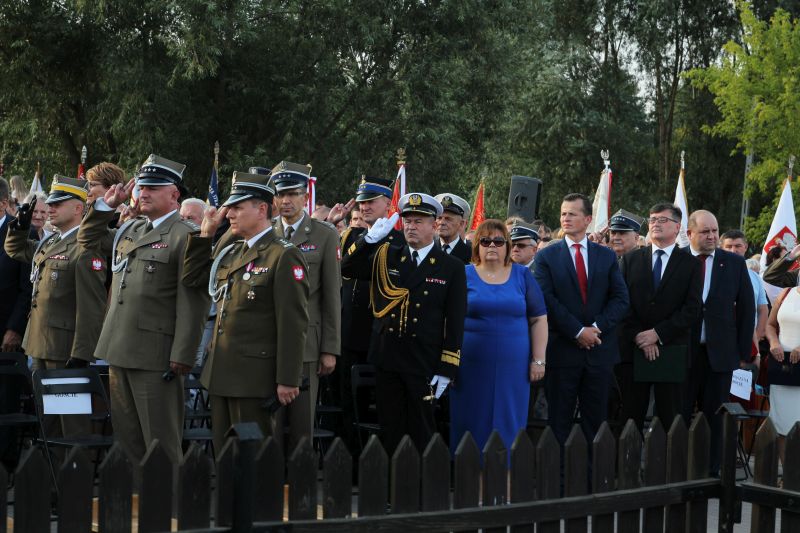 Po zakończeniu mszy św. nastąpiło wprowadzenie sztandaru wojskowego w asyście kompanii reprezentacyjnej Wojsk Lądowych z 9 Brygady Wsparcia Dowodzenia Dowództwa Generalnego Rodzajów Sił Zbrojnych pod dowództwem kpt. Macieja Sulkowskiego. Tę część uroczystości rozpoczęło złożenie kontradm. Mirosławowi Mordelowi meldunku przez dowódcę kompanii reprezentacyjnej, a następnie odegranie „Mazurka Dąbrowskiego”. Prowadzący uroczystość odczytał w dalszej kolejności listy skierowane do organizatorów i uczestników uroczystości przez: Marszałka Sejmu RP –Marka Kuchcińskiego oraz Prezesa Rady Ministrów – Beatę Szydło. Następnie głos zabrał gospodarz uroczystości – burmistrz Nasielska, Bogdan Ruszkowski.