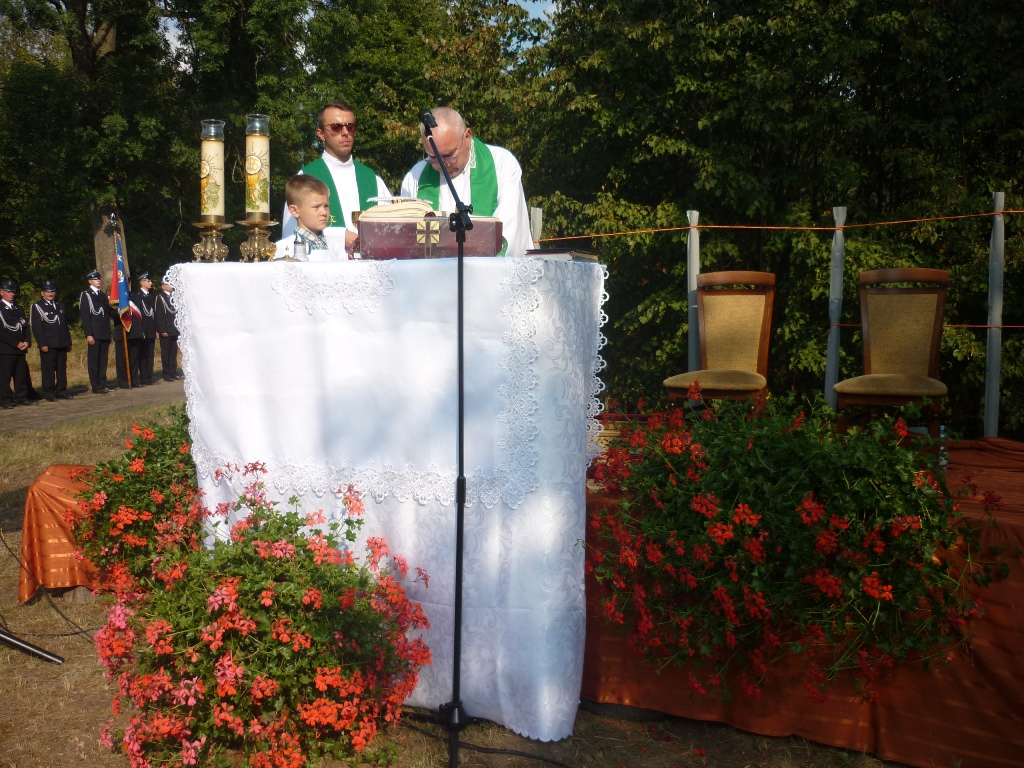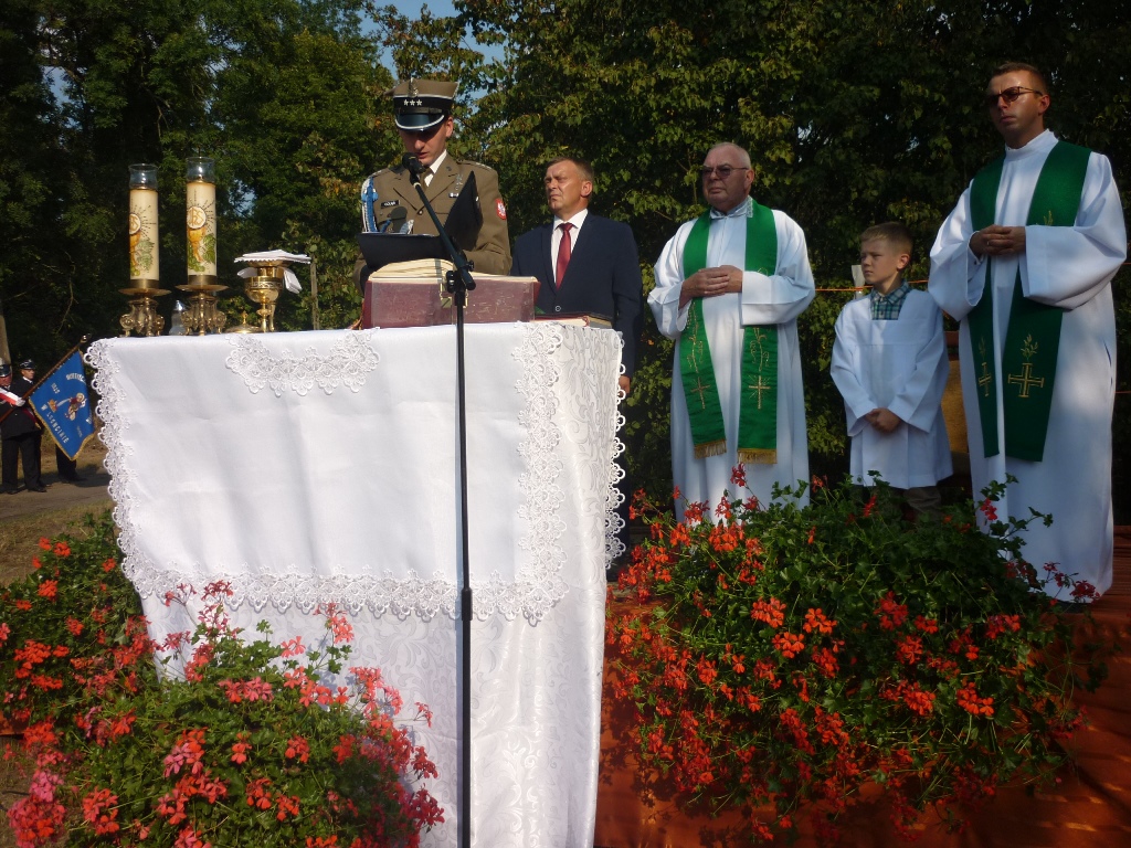 Uroczystość przy pomniku w Rybitwie rozpoczęła koncelebrowana polowa msza św., a homilię wygłosił ks. Kamil Nowacki.