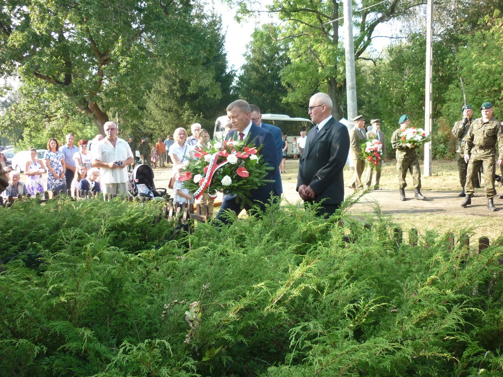 Po mszy św., odczytano apel poległych i oddano salwę honorową. Następnie delegacje złożyły kwiaty pod pomnikiem ku czci zamordowanych w 1944 r. mieszkańców wsi Rybitew.