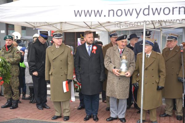Uroczystości rozpoczęła msza św. odprawiona przez proboszcza parafii św. Michała Archanioła ks. kan. Andrzeja Kwiatkowskiego, który w homilii mówił o patriotyzmie oraz wolności. Po zakończonej mszy św. jej uczestnicy i poczty sztandarowe przeszły pod pomnik marszałka Józefa Piłsudskiego, gdzie odśpiewano hymn państwowy, złożono kwiaty i zapalono znicze pamięci. Znicz pamięci zapalili kombatanci kpt. w st. spocz. Andrzej Rak i Roman Kaczorowski. Posterunek honorowy przy pomniku wystawił 2 Mazowiecki pułk saperów. Podczas uroczystości głos zabrali Jacek kowalski – burmistrz Nowego Dworu Mazowieckiego i płk rez. Alfred Kabata – prezes ZG ZOR RP. Odczytano również list okolicznościowy od senatora Jana Żaryna.