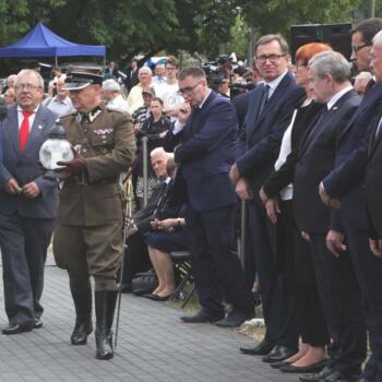 Z kolei głos zabrał także Przewodniczący Honorowego Komitetu Obchodów Narodowego Dnia Pamięci Ofiar Ludobójstwa Polaków na Kresach Wschodnich ks. Tadeusz Isakowicz-Zaleski, który w imieniu społecznego komitetu podziękował za przygotowanie dwóch uroczystości, niedzielnej społecznej i środowej państwowej. – Chciałem bardzo podziękować Panu Prezydentowi RP, że w niedzielę, w tak bardzo ważnym dla nas dniu, pojechał na Wołyń, oddał cześć pomordowanym i powiedział prawdę. Na to czekaliśmy, bardzo dziękujemy. To zdjęcie, na którym Pan Prezydent składa wieniec, na polu, gdzie jest łan zbóż, na miejscu wioski, która nie istnieje, a kości jej mieszkańców leżą gdzieś tam pod tym zbożem- przejdzie chyba do symbolu czasów współczesnych. Brak miejsca pochówku jest chyba najtrudniejszą sprawą.