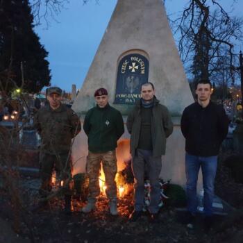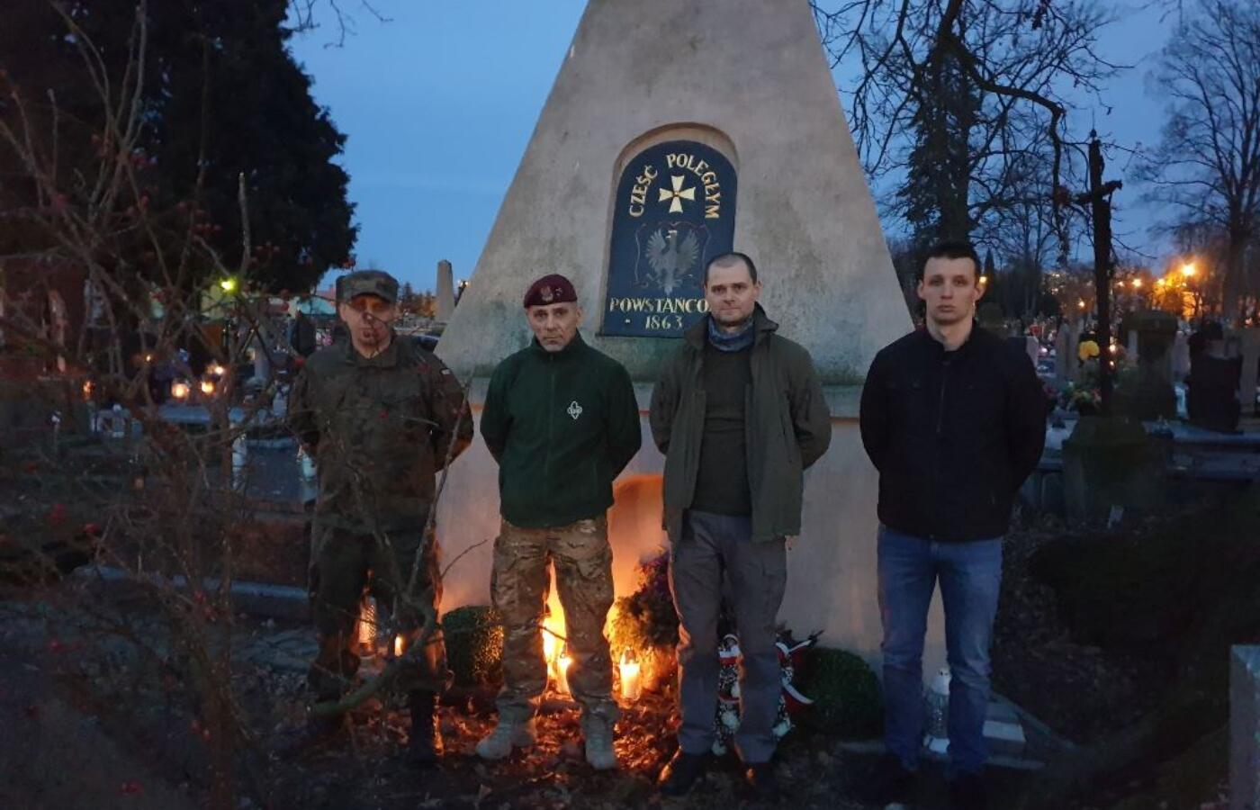 Przed Pomnikiem Powstańców Styczniowych zgromadzili się członkowie Koła ZOR RP w Stalowej Woli: Krzysztof Pąk i Mariusz Świeca oraz przedstawiciele 54-tej Stalowowolskiej Drużyny Harcerskiej ZHP, dowódca Polowej Drużyny Sokoła i prezes Fundacji „Przywróćmy Pamięć’.