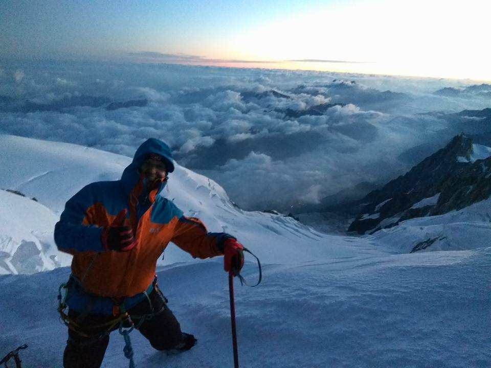 Wyprawa rozpoczęła się od Les Houches niedaleko miasta Chamonix we Francji. Następnie drużyna ruszyła poprzez La Chalette, Col du Mt Lachat i Gare du Nid d’Agile do Refuge de Tete Rousse. W Tete Rousse dokonana została aklimatyzacja, podstawowy kurs alpinistyczny i podejście wstępne do Le Grd Couloir’u (kuluary spadających kamieni). Nocleg przewidziany był w namiotach co było utrudnieniem całej wyprawy. Po aklimatyzacji rozpoczęła się tułaczka po Alpach z noclegami na śniegu, trudnymi warunkami pogodowymi (burza śnieżna, wiatr, deszcz i gęsta mgła). Chwilową ulgę dostarczył Refuge Bivouac Vallot (blaszany bunkier). Po spędzonej nocy około 04.00 rozpoczął się atak na szczyt. Dzięki wykorzystaniu „okienka pogodowego” wyprawa zakończyła się sukcesem. Jak na zamówienie ukazał się Pik Mont Blanc, który dostarczył niezapomnianych wrażeń.