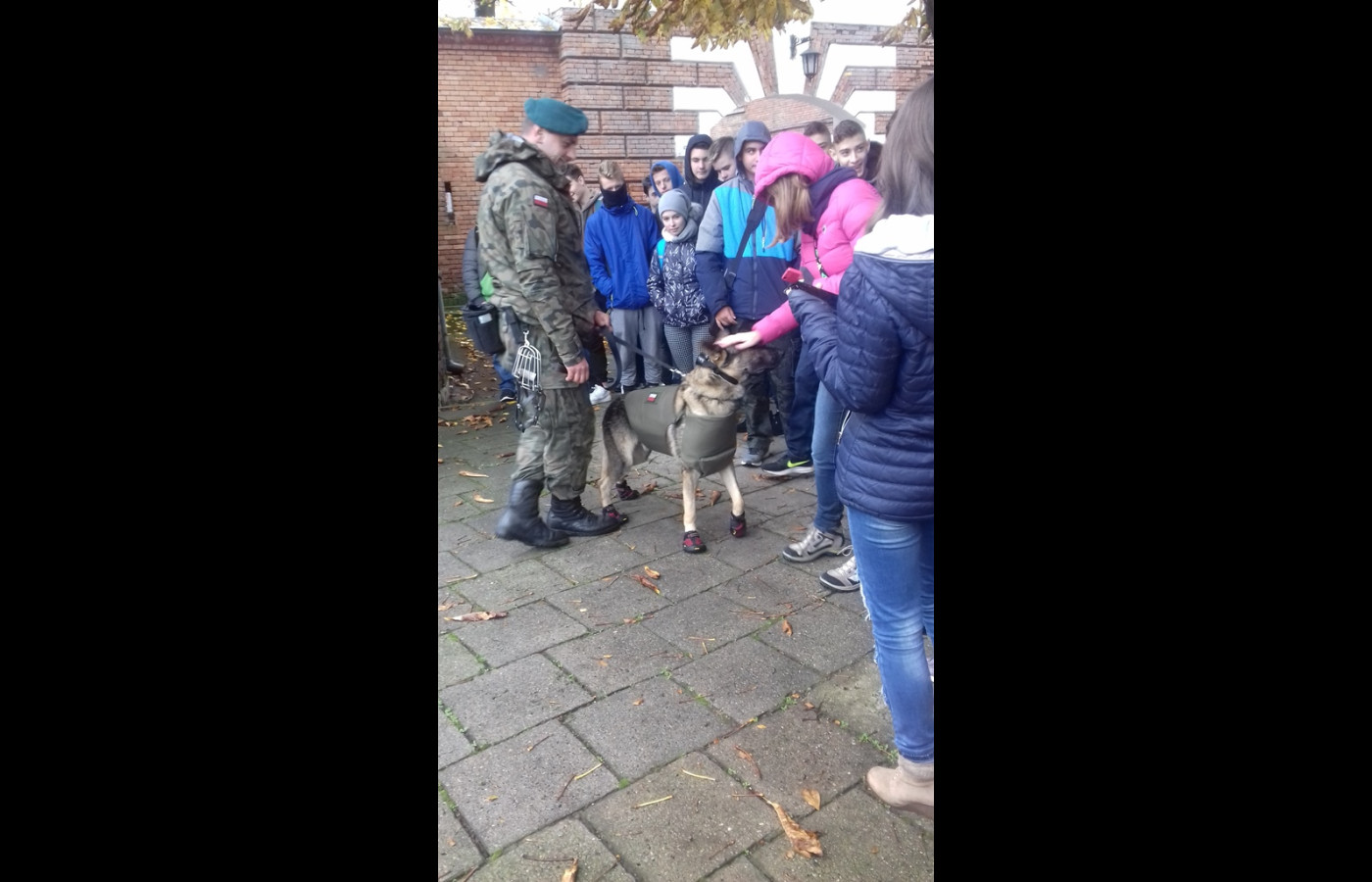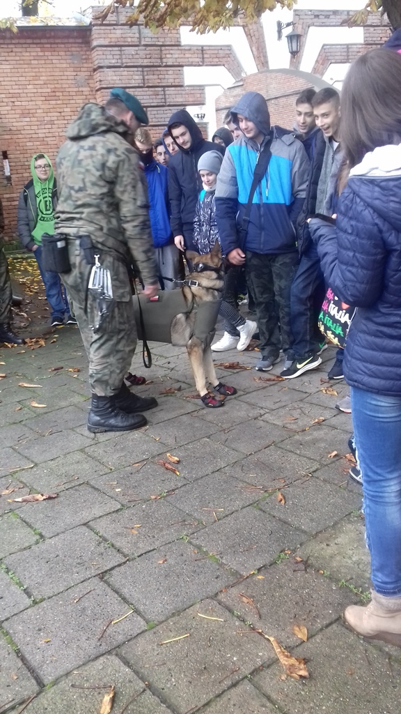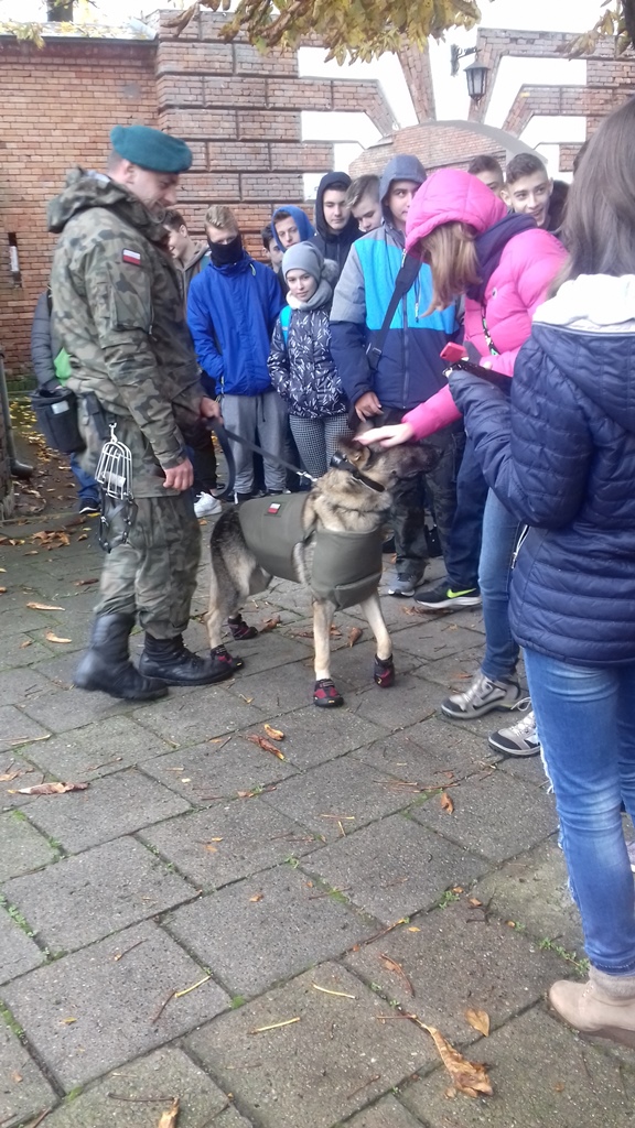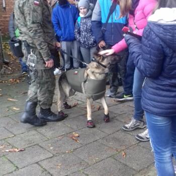 Uczniowie z zaciekawieniem obserwowali wyszkolenie psów służbowych, a zwłaszcza umiejętność wykrywania przez nie ładunków wybuchowych. Pluton przewodników psów jest chlubą 2 Mazowieckiego pułku saperów. Jest jedynym takim plutonem w wojskach lądowych. Pododdział brał udział w misjach poza granicami kraju, m.in. w Afganistanie. Owczarki niemieckie i owczarki belgijskie przeszkolone są specjalnie do tego, by wykrywać materiały wybuchowe, broń i amunicję.