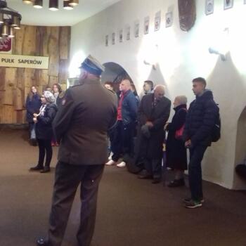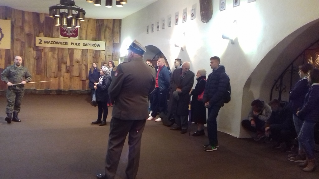Pobyt w koszarach uczniowie i ich opiekunowie rozpoczęli od sali tradycji, gdzie w sposób niezwykle przystępny i ciekawy, zapoznani zostali z historią i współczesnymi osiągnięciami 2 Mazowieckiego pułku saperów.