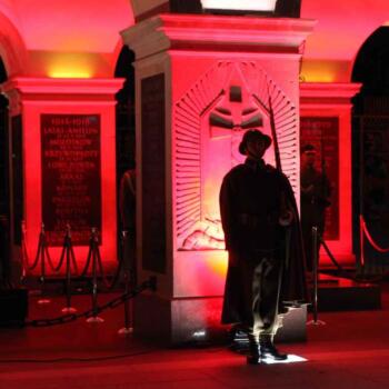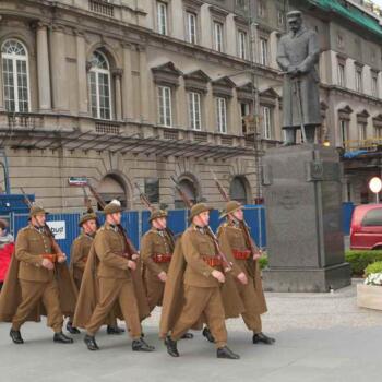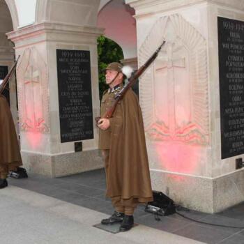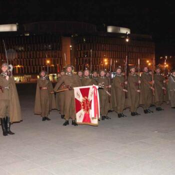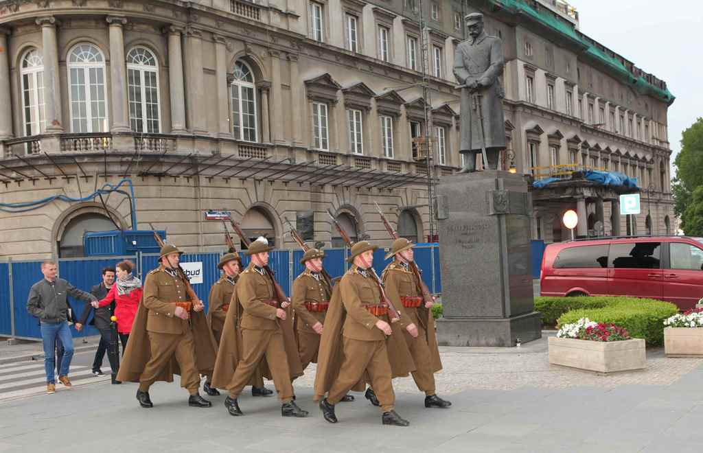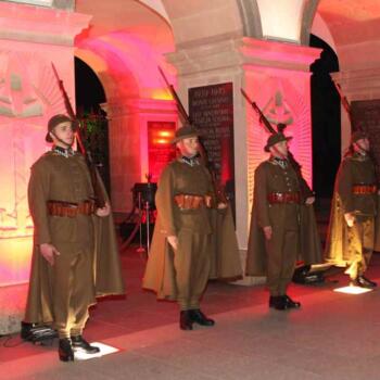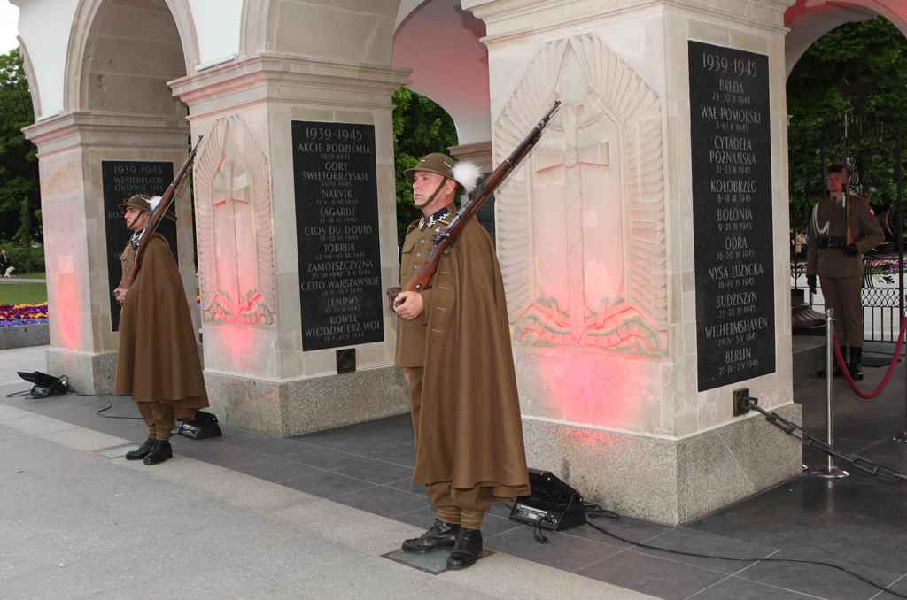 Rekonstruktorzy ze Stowarzyszenia Historycznego 'Cytadela” w mundurach żołnierzy Zmiany Górskiej Batalionu Stołecznego (1936/1937) z pieczołowicie odtworzonym sztandarem tej przedwojennej formacji reprezentacyjnej Wojska Polskiego, pełnili służbę wartowniczą przy Grobie Nieznanego Żołnierza i przed budynkiem Dowództwa Garnizonu Warszawa.