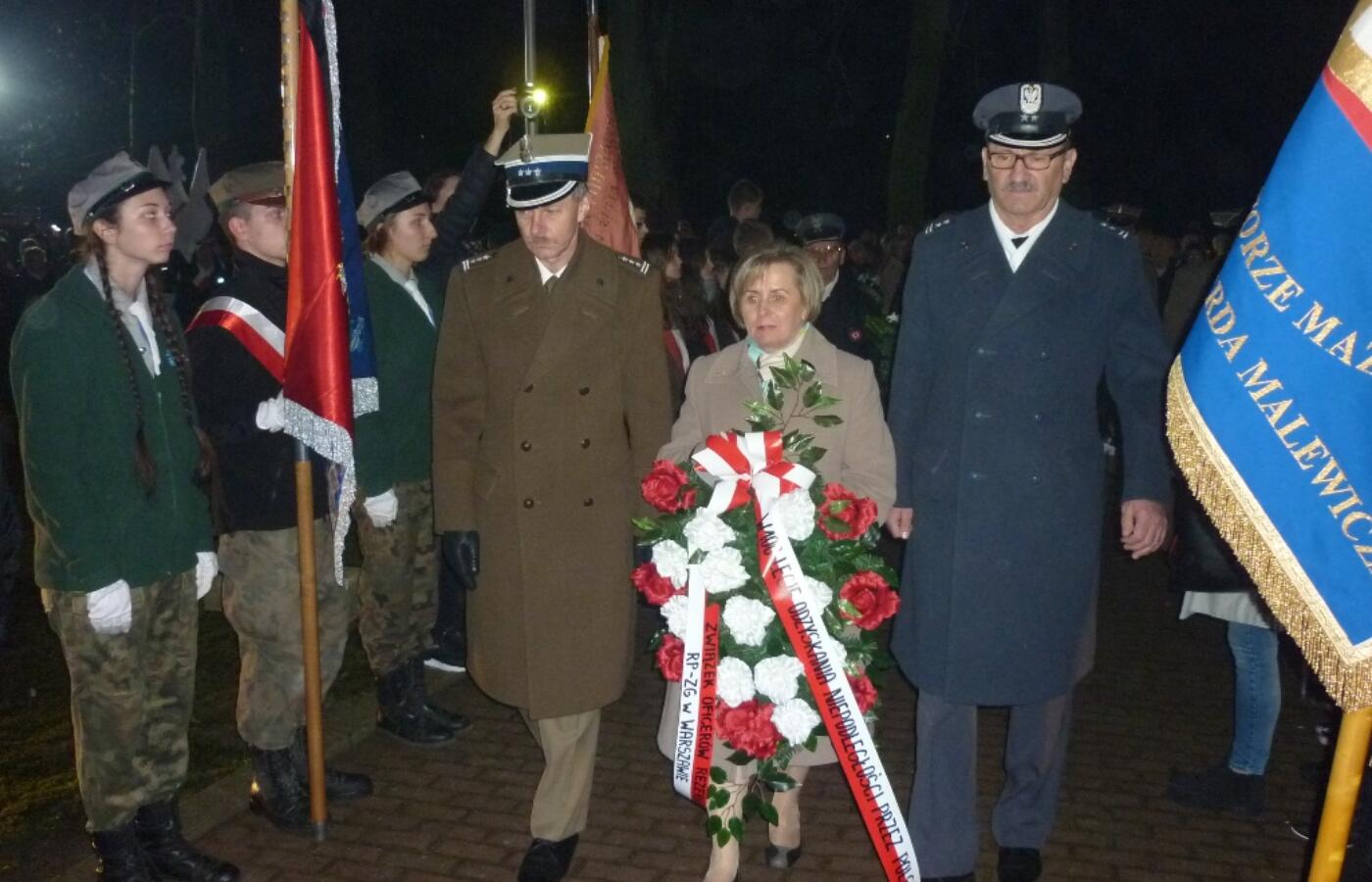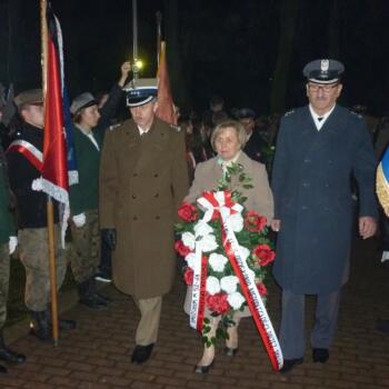Po złożeniu kwiatów pod pomnikiem, wysłuchano kilku pieśni patriotycznych w wykonaniu orkiestry z Płońska przy współudziale płońskich „Mażoretek”.