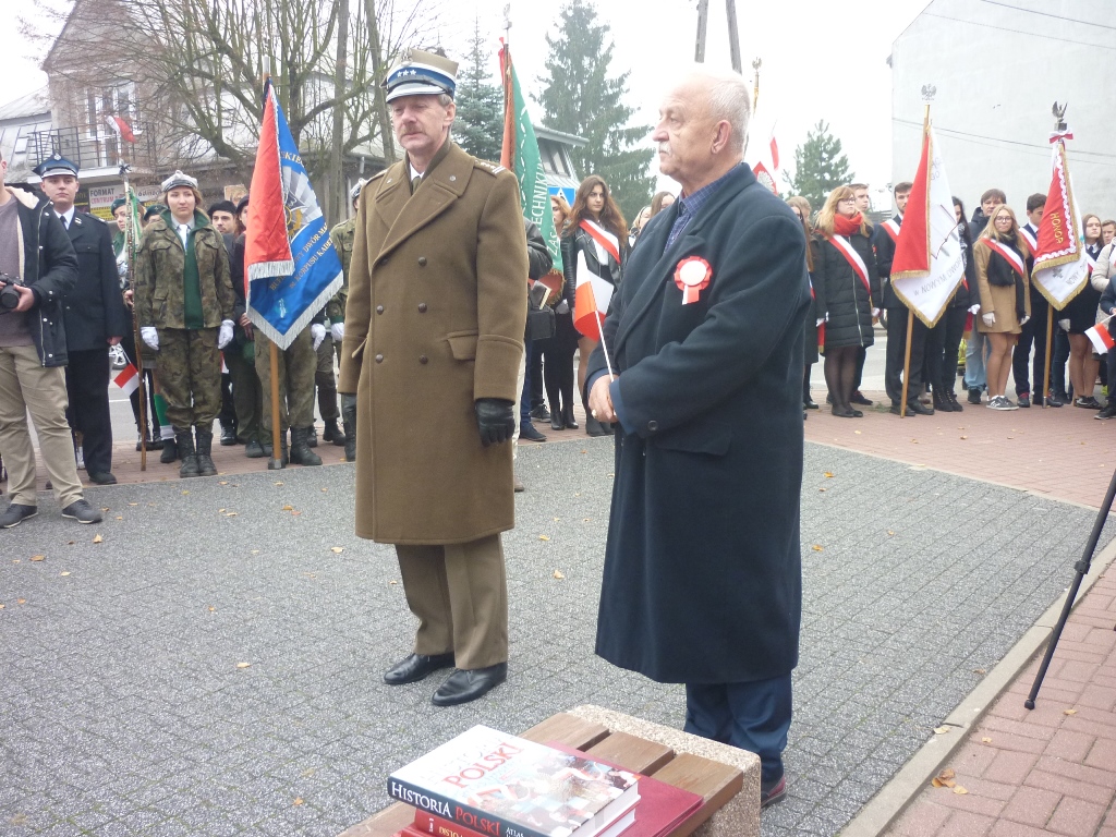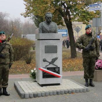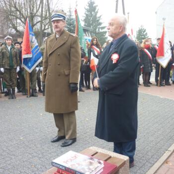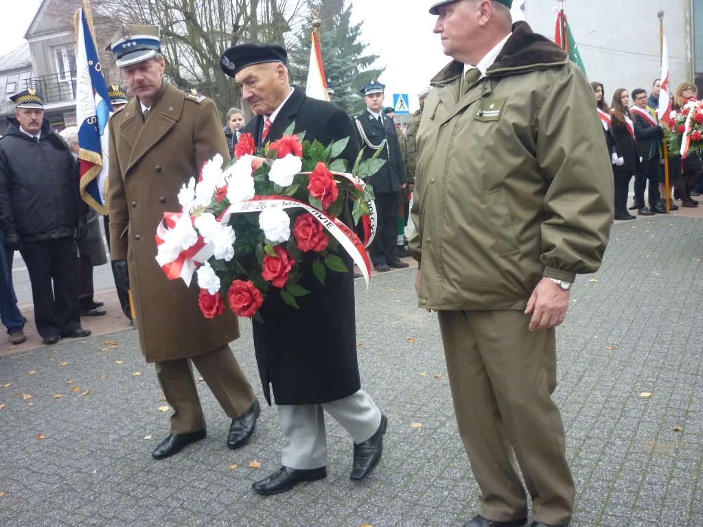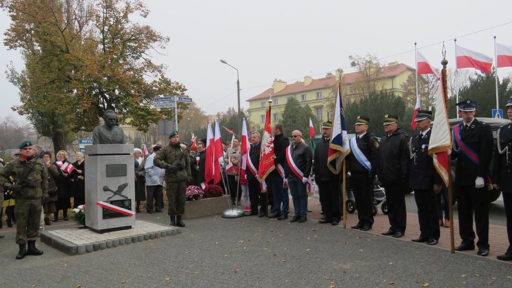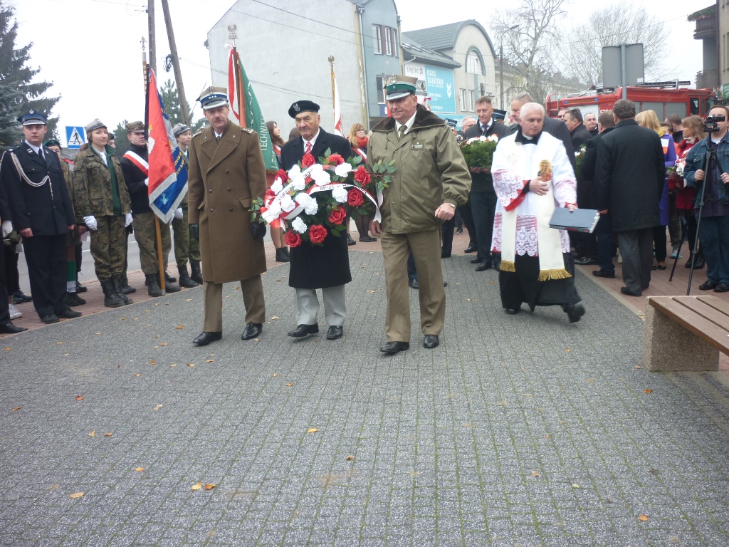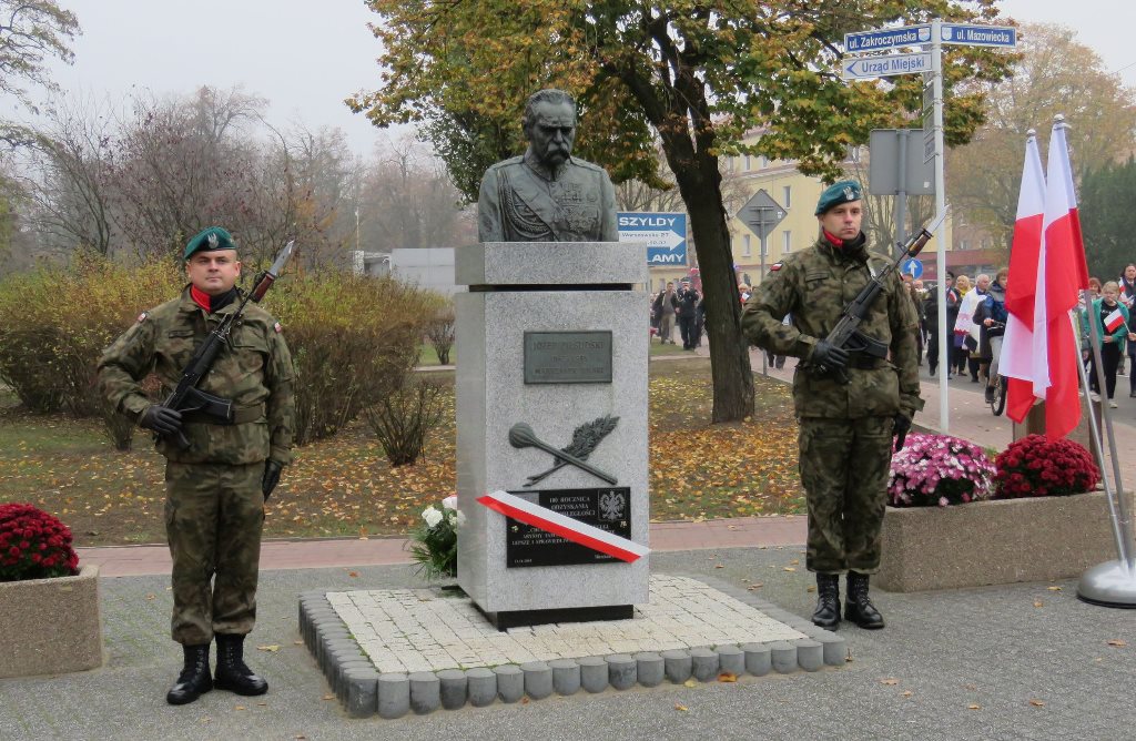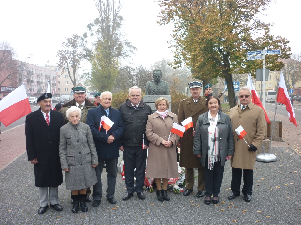 Przy pomniku, po odegraniu hymnu państwowego, głos zabrali m.in. burmistrz Jacek Kowalski i płk rez. Alfred Kabata – prezes ZG Związku Oficerów Rezerwy Rzeczypospolitej Polskiej. Następnie odsłonięto okolicznościową tablicę, przytwierdzoną do pomnika Marszałka Józefa Piłsudskiego. Tablicę odsłonili burmistrz Jacek Kowalski, przewodniczący Rady Miejskiej Krzysztof Bisialski, prezes Związku Oficerów Rezerwy RP – płk rez. Alfred Kabata, kombatant i honorowy obywatel miasta Roman Kaczorowski oraz Tadeusz Sosiński. Poświęcenia tablicy dokonał ks. kan. Andrzej Kwiatkowski.