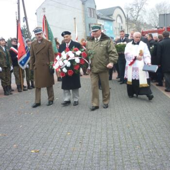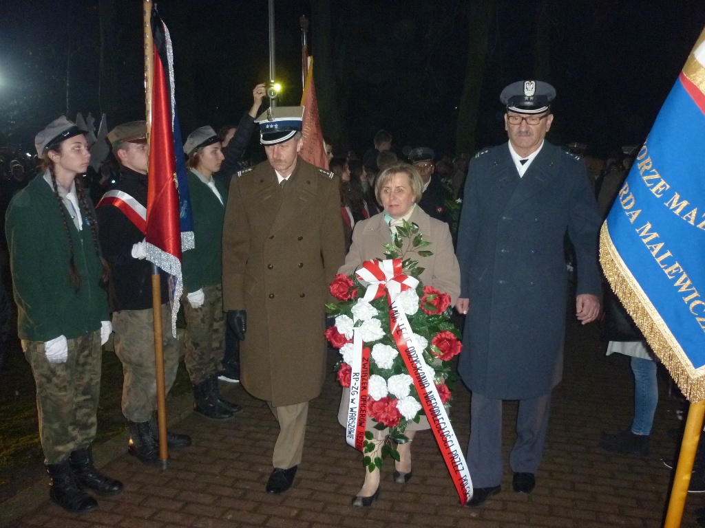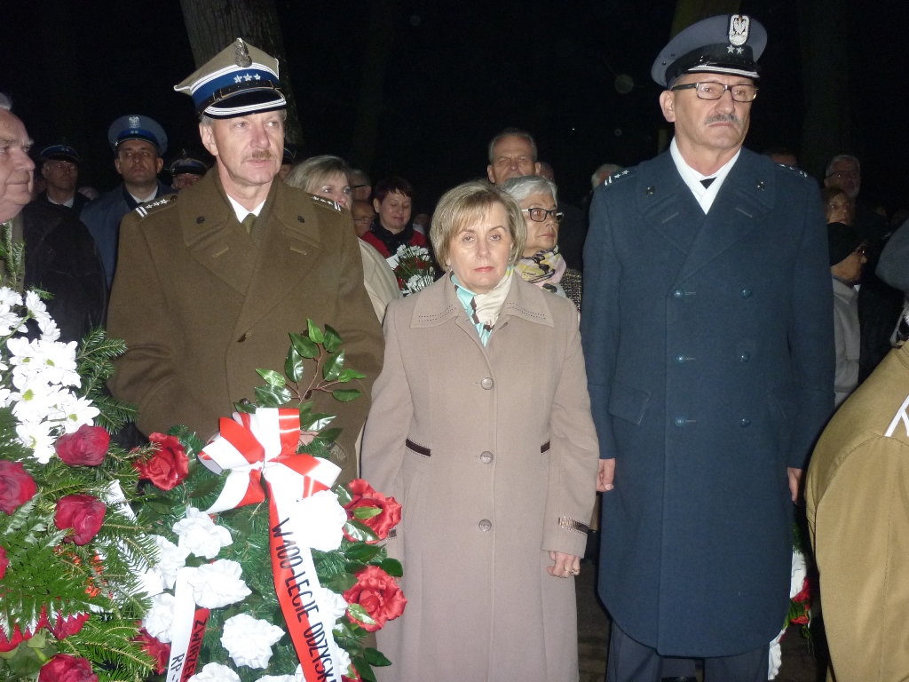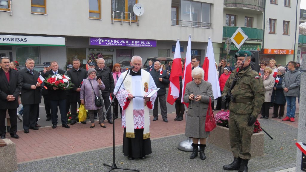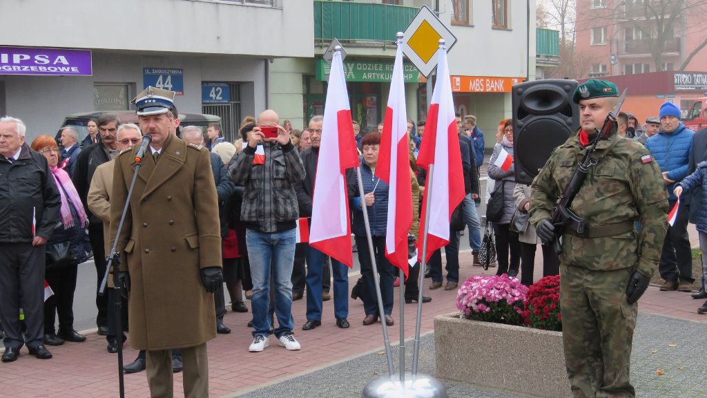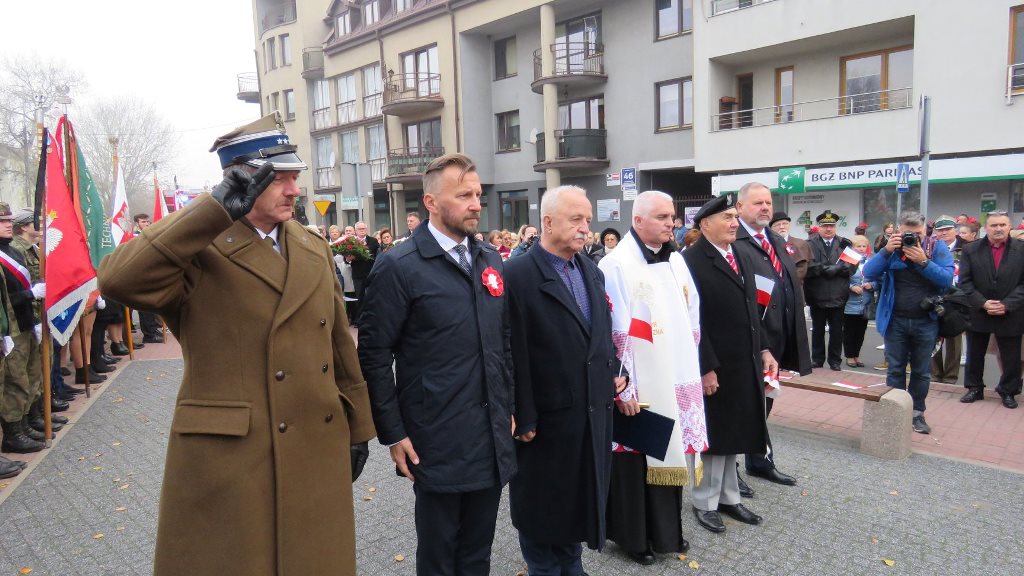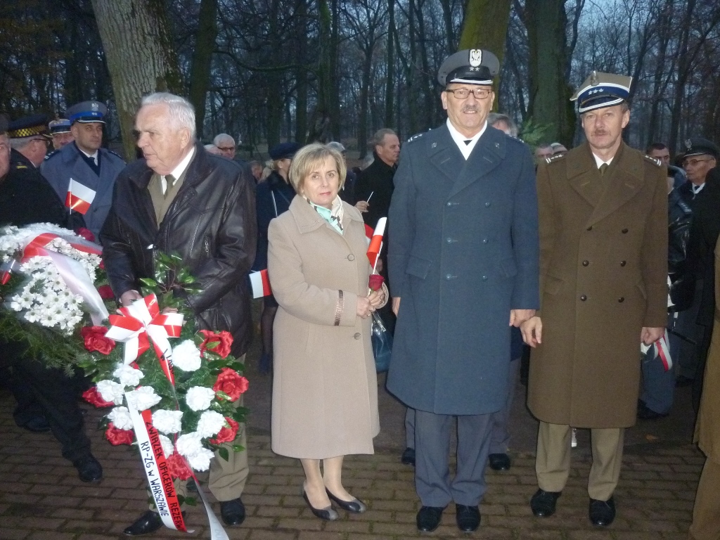 Przy pomniku, po odegraniu hymnu państwowego, głos zabrali m.in. burmistrz Jacek Kowalski i płk rez. Alfred Kabata – prezes ZG Związku Oficerów Rezerwy Rzeczypospolitej Polskiej. Następnie odsłonięto okolicznościową tablicę, przytwierdzoną do pomnika Marszałka Józefa Piłsudskiego. Tablicę odsłonili burmistrz Jacek Kowalski, przewodniczący Rady Miejskiej Krzysztof Bisialski, prezes Związku Oficerów Rezerwy RP – płk rez. Alfred Kabata, kombatant i honorowy obywatel miasta Roman Kaczorowski oraz Tadeusz Sosiński. Poświęcenia tablicy dokonał ks. kan. Andrzej Kwiatkowski.