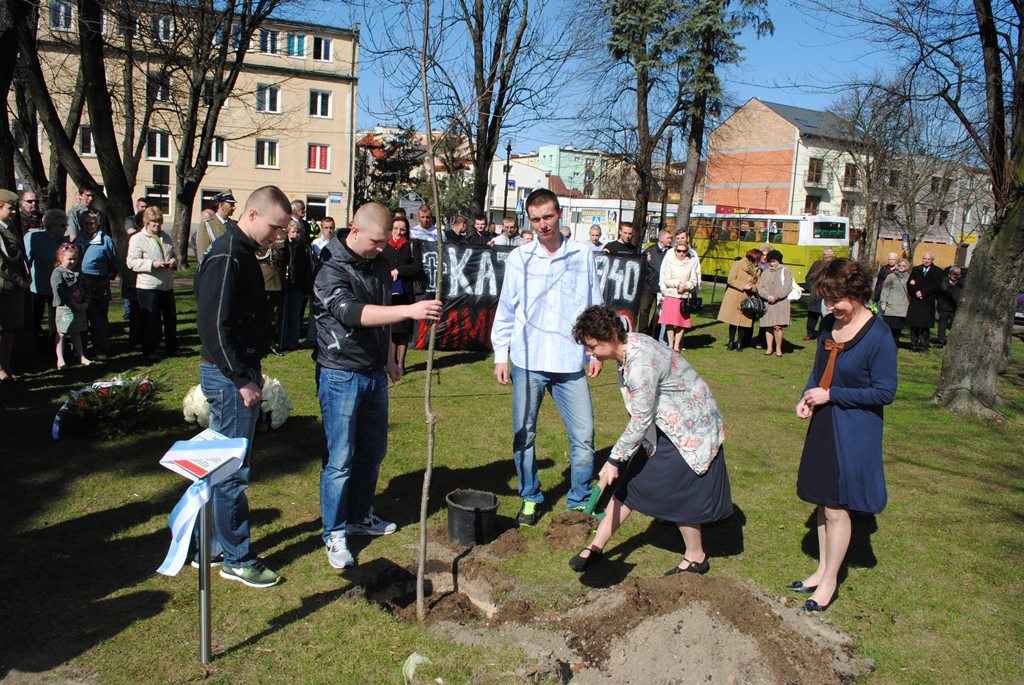 W drugiej części uroczystości odbywającej się na skwerze przed Urzędem Miejskim posadzono „Dąb Pamięci” upamiętniający ppłk sap. Romana Jędraszko – oficera Batalionu Elektrotechnicznego. Był to już piąty „Dąb Pamięci” posadzony w Nowym Dworze Mazowieckim przez Zespół Szkół nr 2 w ramach ogólnopolskiej akcji „Katyń… ocalić od zapomnienia”. Informację o prowadzonej akcji przedstawiła Ewa Malasiewicz – dyrektor Zespołu Szkół nr 2, a biogram ppłk. Romana Jędraszko odczytał uczeń szkoły. Posadzenia „Dębu Pamięci” dokonała mieszkająca w Anglii wnuczka ppłk. Romana Jędraszko – Dorota Butler i młodzież szkolna. Ona też wraz z płk rez. Alfredem Kabatą odsłoniła okolicznościową tabliczkę Katyńską. Podziękowała także w imieniu licznie zgromadzonej rodziny za zorganizowanie uroczystości i upamiętnienie jej dziadka.