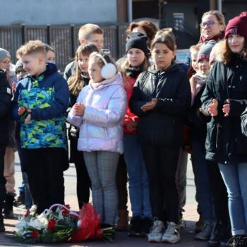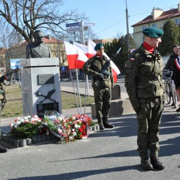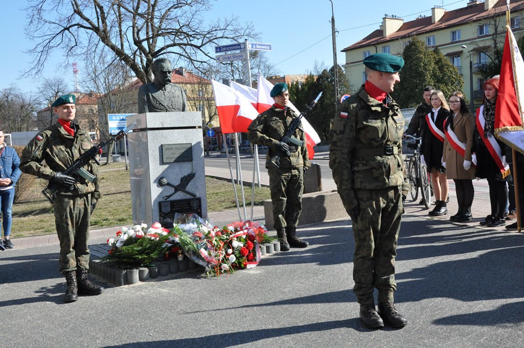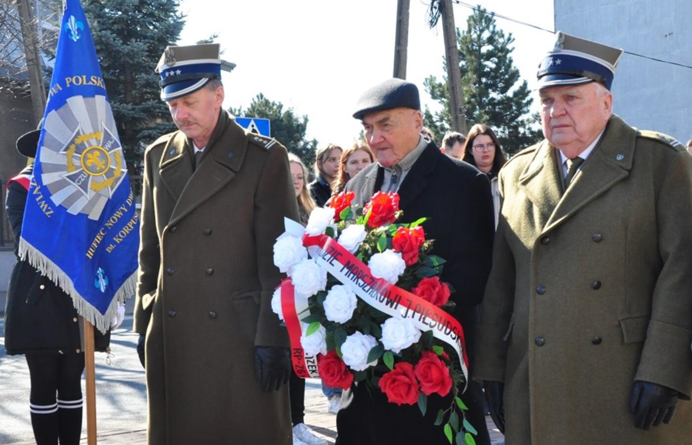 Następnie pod Pomnikiem Marszałka Józefa Piłsudskiego złożono kwiaty i zapalono znicze.
