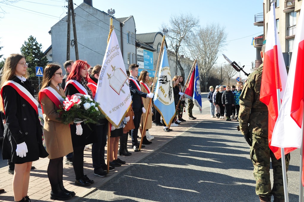 W uroczystości wziął udział burmistrz miasta – Jacek Kowalski, radna Rady Miejskiej w Nowym Dworze Mazowieckim – Justyna Paszkiewicz oraz uczniowie ze Szkoły Podstawowej nr 1, Zespołu Szkół nr 2, Zespołu Szkół Zawodowych nr 1, Liceum Ogólnokształcącego, Zespołu Placówek Edukacyjnych i Warsztatów Terapii Zajęciowej, harcerze z Hufca ZHP w Nowym Dworze Mazowieckim, przedstawiciele Straży Miejskiej, kombatanci i mieszkańcy miasta.