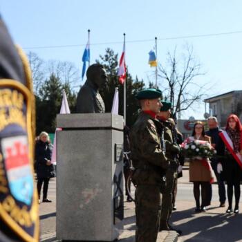 Zabierając głos burmistrz miasta Jacek Kowalski powiedział m.in.: Pamięć historyczna i kultywowanie tradycji jest szczególnie ważne w momencie, gdy za naszą wschodnią granicą brać Ukraińska walczy o swoją niepodległość z bronią w ręku. Dziękuję Związkowi Oficerów Rezerwy RP, który był organizatorem uroczystości, 2 Mazowieckiemu Pułkowi Saperów za honorowy posterunek pod pomnikiem, nowodworskim szkołom oraz Hufcowi ZHP w Nowym Dworze Mazowieckim za wystawienie pocztów sztandarowych, a także młodzieży, kombatantom, Straży Miejskiej i mieszkańcom za obecność na uroczystości.