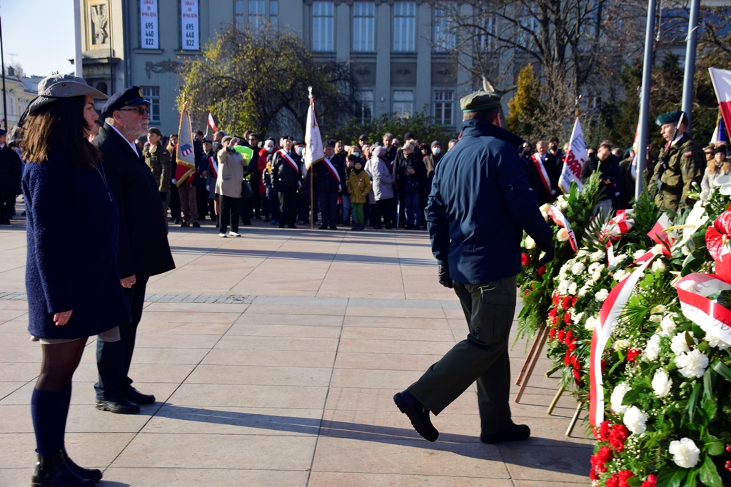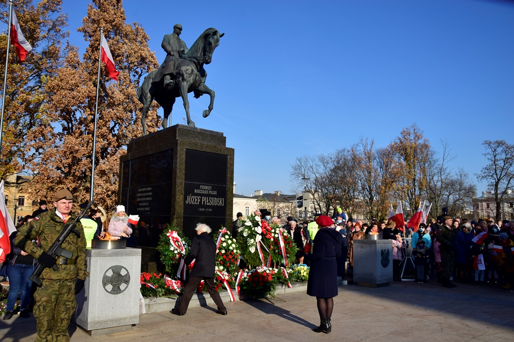 Po przemówieniu Wojewody odczytany został Apel Pamięci Oręża Polskiego i oddano salwę honorową. Następnie złożone zostały wiązanki i wieńce pod pomnikami Nieznanego Żołnierza i Marszałka Józefa Piłsudskiego.