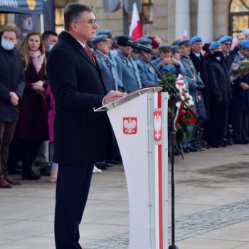 W przemówieniu Wojewoda Lubelski nawiązywał do słów poety Cypriana Kamila Norwida. Czy w obliczu choćby kryzysu migracyjnego i wojny hybrydowej na granicy polsko-białoruskiej, pandemii COVID, podważania systemu wartości kształtującego fundament Polski i Europy, stać nas na heroizm zdefiniowany przez Norwida? Na pewno ten egzamin, z tak rozumianego heroizmu zdają funkcjonariusze Straży Granicznej, wojska, policji i służba zdrowia. Chwała im za to i wielkie podziękowanie – powiedział Lech Sprawka i dodał: – Wierzę że nie tylko dzisiaj, każdego dnia, każdy z mieszkańców województwa lubelskiego i całej Polski będzie mógł nucić słowa popularnej piosenki: „Ja to mam szczęście, że w tym momencie, żyć mi przyszło,