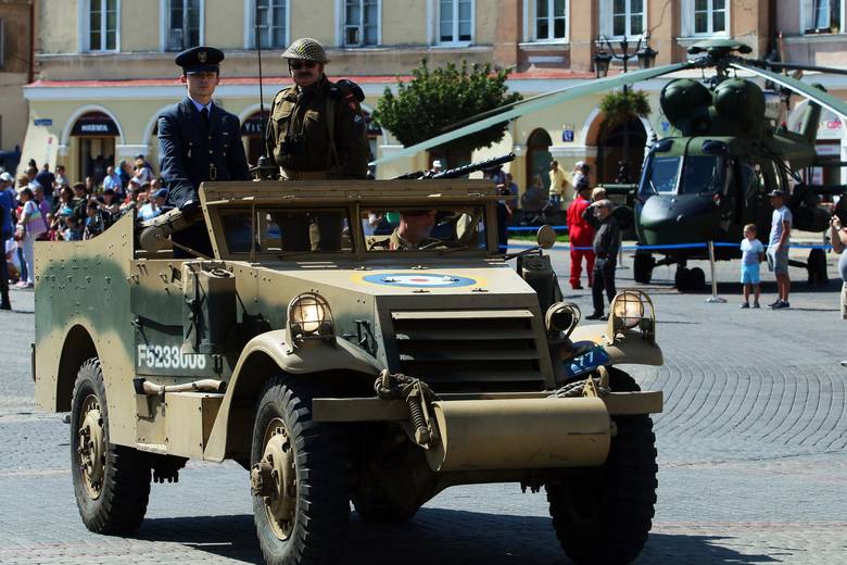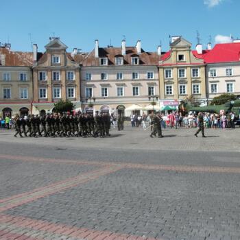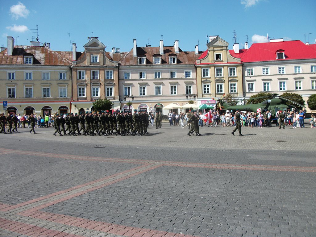 Następnie złożono wieńce pod pomnikiem żołnierzy AK-WiN majora Hieronima Dekutowskiego „Zapory” oraz pod tablicami pamiątkowymi przy wejściu na zamek. Odczytano też Apel Pamięci Oręża Polskiego i oddano salwę honorową. W uroczystych obchodach Święta Wojska Polskiego wzięli udział mieszkańcy miasta i zaproszeni goście. Uczestnicy defilady mogli podziwiać historyczne pojazdy wojskowe w barwach Polskich Sił Zbrojnych na Zachodzie z lat II wojny światowej z kolekcji lubelskiej Fundacji Niepodległości. Pojazdom towarzyszyli rekonstruktorzy z Grupy Edukacji Historycznej w mundurach i z wyposażeniem oraz uzbrojeniem polskich żołnierzy jednostek 2 Korpusu Polskiego, walczących pod dowództwem generała Władysława Andersa we Włoszech oraz 1 Dywizji Pancernej gen. Stanisława Maczka. W kawaleryjskiej części defilady wziął udział poczet sztandarowy Ochotniczego Szwadronu Jazdy im. 1 Pułku Ułanów Krechowieckich. Ułani przybyli w charakterystycznych szarych dwurzędowych kurtkach mundurowych tzw. ułankach w jakich 'Krechowiacy’ walczyli w wojnie z bolszewikami w roku 1920. W II Rzeczypospolitej był tak również umundurowany Szwadron Przyboczny Prezydenta RP. Później rozpoczął się festyn na błoniach zamkowych w czasie którego można było podziwiać pokazy strzelania przeciwlotniczej armaty Bofors 40 mm.
