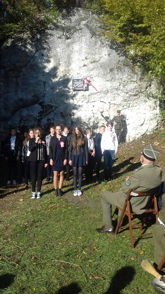 Następnie dwaj kombatanci mjr. Tadeusz Klimas i por. Mieczysław Rosół w towarzystwie starosty zawierciańskiego dokonali odsłonięcia nowej tablicy. Kombatanci opowiedzieli o swoich przeżyciach związanych z działalnością w AK, o tym jak w latach 40 nie mogli np. głosować w czasie wyborów będąc na ,,czarnych listach” jako żołnierze – partyzanci AK.