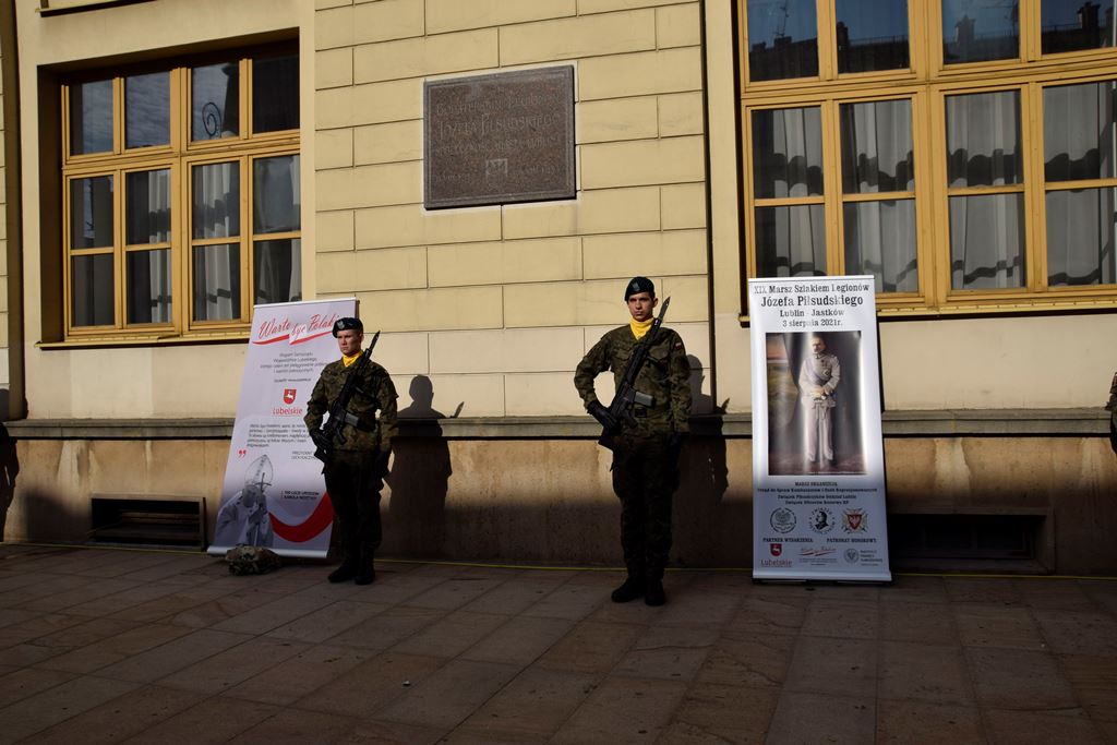 Marsz jak co roku rozpoczął się przed lubelskim Ratuszem o godzinie 8.00, gdzie pod tablicami pamiątkowymi poświęconymi Bohaterskim Legionom i generałowi Gustawowi Orlicz – Dreszerowi zostały złożone wiązanki kwiatów. Następnie kombatanci, młodzież szkolna, członkowie Związku Piłsudczyków i Związku Oficerów Rezerwy RP, strzelcy oraz zaproszeni goście przeszli na plac Litewski w Lublinie, gdzie okolicznościowe przemówienie wygłosili: Szef Urzędu do Spraw Kombatantów i Osób Represjonowanych Jan Józef Kasprzyk, Wicewojewoda Lubelski Robert Gmitruczuk, Wójt Gminy Jastków Teresa Kot oraz Dyrektor Instytutu Pamięci Narodowej Oddział Lublin Marcin Krzysztofik, którzy w swych wystąpieniach przypomnieli historię walk Polaków o wolność i niepodległość naszej Ojczyzny. Wspomniano, że dzięki tej walce i olbrzymiemu poświęceniu polska ziemia wydała plon, na który Polacy czekali bardzo długo. Pan Minister Jan Józef Kasprzyk odznaczył medalem Pro Bono Poloniae mł. chor. Tomasza Dyzmę , a kpt. w st. spocz. Andrzeja Bisa medalem Pro Patria.