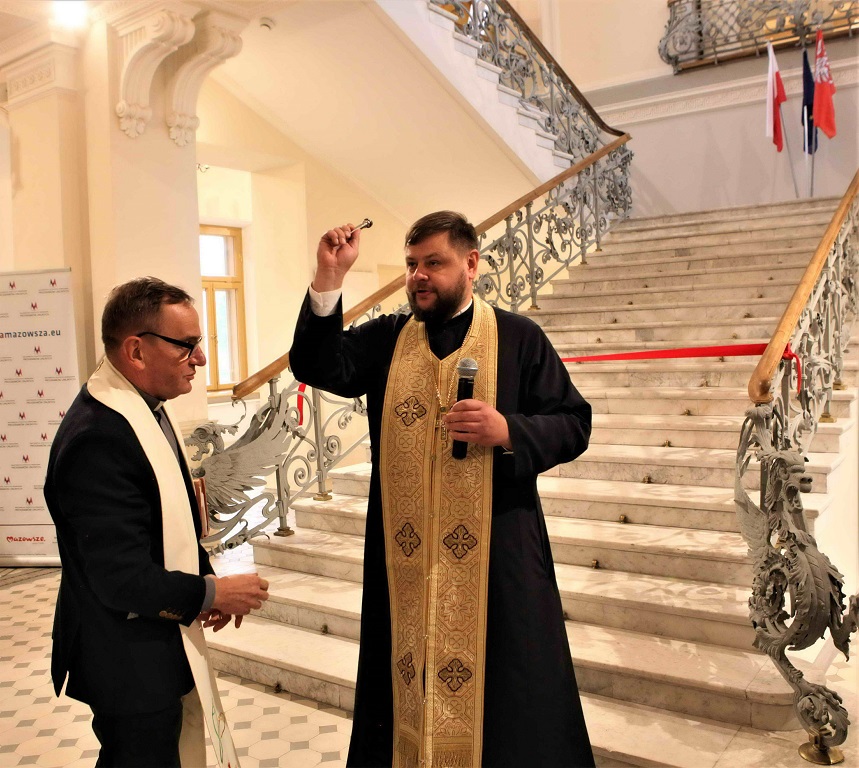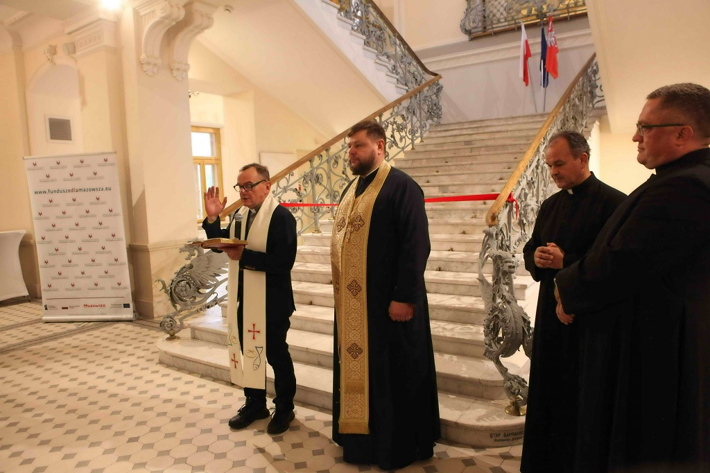 Podczas uroczystego otwarcia obiekt został poświęcony przez ks. proboszcza Janusza Nawrockiego, któremu towarzyszyli księża proboszczowie z okolicznych parafii. Do uroczystego przecięcia wstęgi burmistrz Nowego Dworu Mazowieckiego Jacek Kowalski poprosił: byłego prezydenta RP Bronisława Komorowskiego, posłów: Dominikę Chorosińską i Macieja Laska, przewodniczącą Mazowieckiej Komisji Kultury i Dziedzictwa Narodowego Jadwigę Zakrzewską, reprezentującą Marszałka Woj. Mazowieckiego Magdalenę Biernacką, dyrektora Mazowieckiej Jednostki Wdrażania Programów Unijnych Mariusza Frankowskiego, starostę nowodworskiego Krzysztofa Kapustę, przewodniczącego Rady Miejskiej Nowego Dworu Mazowieckiego Krzysztofa Bisialsiego i dyrektora Nowodworskiego Ośrodka Kultury Agnieszkę Kubiak-Falęcką.
