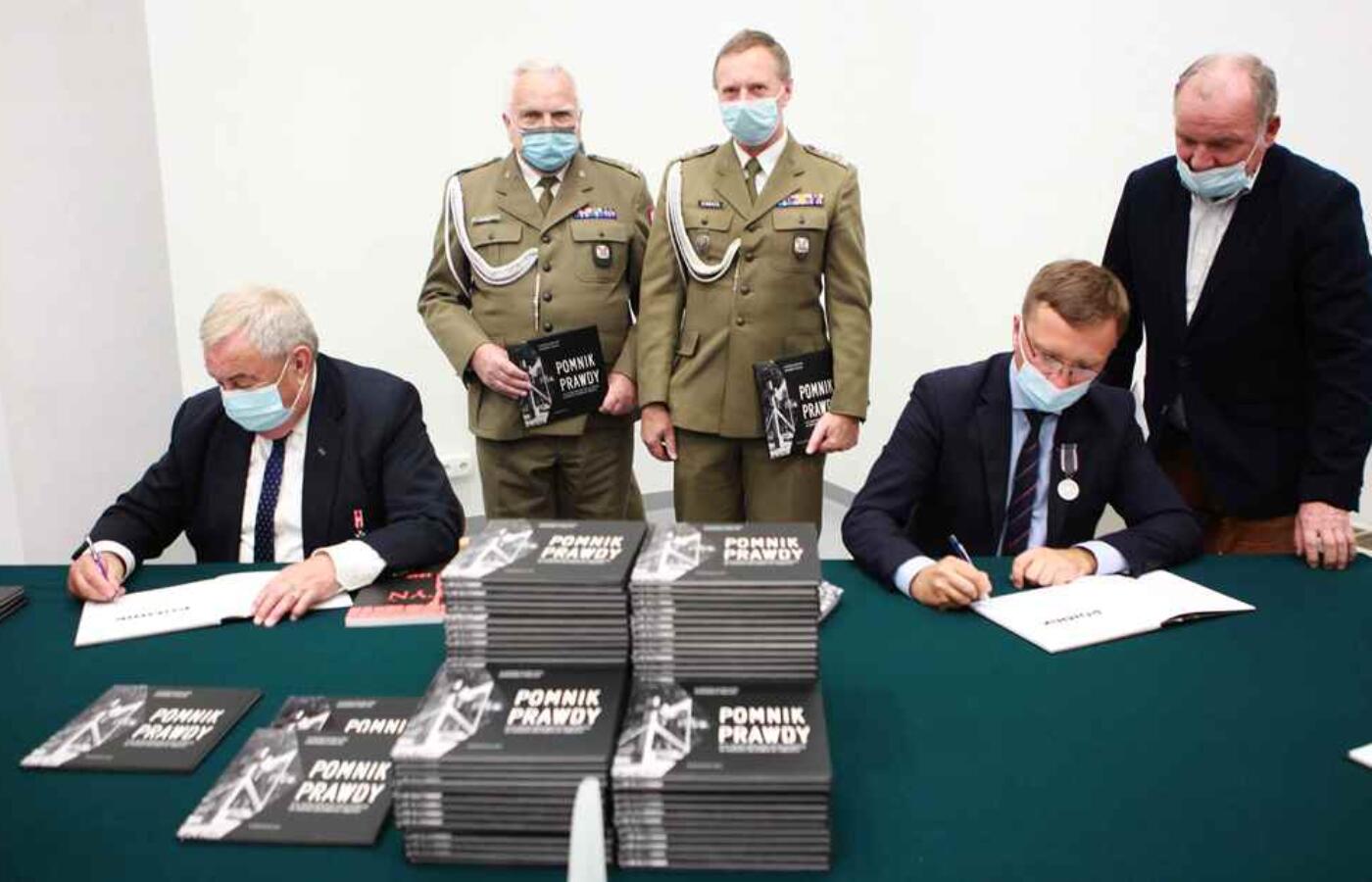 Podczas spotkania w CBW zaprezentowano książkę „Pomnik prawdy”, autorstwa Łukasza Kudlickiego i Andrzeja Melaka, poświęconą wydarzeniom sprzed 40 lat. Mówiąc o publikacji, Łukasz Kudlicki przypomniał historię pomnika. Powstał on z inicjatywy m.in. Stefana Melaka, wówczas przewodniczącego Konspiracyjnego Komitetu Katyńskiego, którego celem było upamiętnienie ofiar tej zbrodni. Pomnik powstał w konspiracji, jego elementy zostały wykonane w kilku zakładach kamieniarskich, a napis u kilku brązowników.