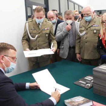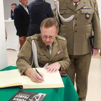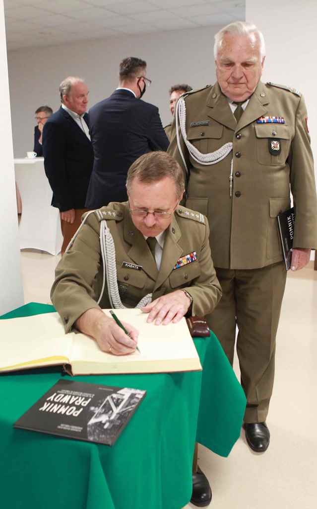 Na zakończenie spotkania płk rez. Alfred Kabata w imieniu ZOR RP wpisał się do księgi pamiątkowej CBW.