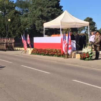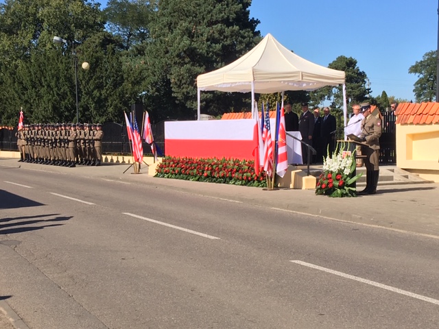 Po polowej mszy św. rozpoczęła się część patriotyczna. Powitano Asystę Honorową z Pułku Reprezentacyjnego Wojska Polskiego. Orkiestra Wojska Polskiego odegrała Hymny: Polski, Stanów Zjednoczonych Ameryki Północnej i Francji. Następnie przemówienia okolicznościowe wygłosili zaproszeni goście. Został także uroczyście odczytany Apel Poległych.